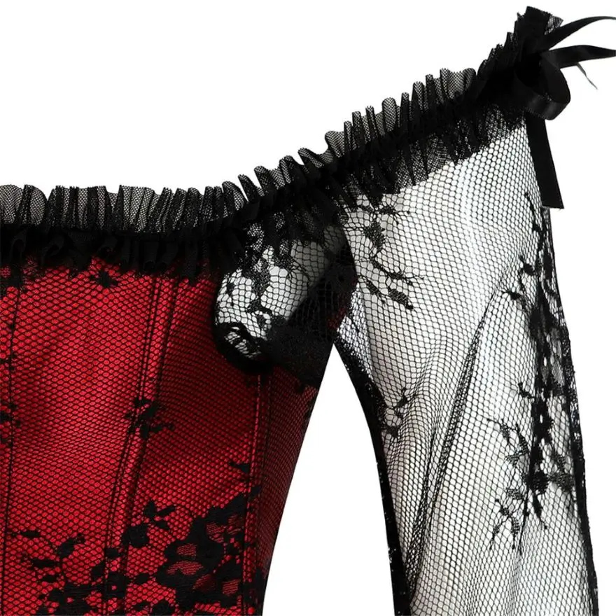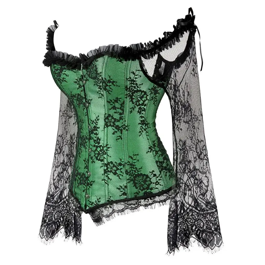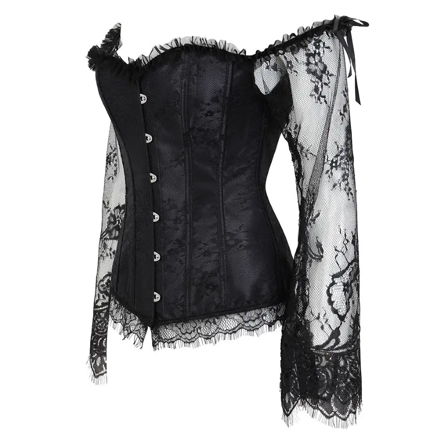 Name Sexy Off Shoulder Transparent Lace Sleeves Embroidery Corset