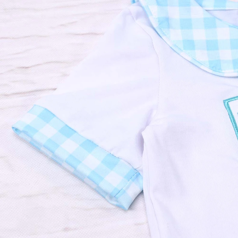 С надписью «I Love Mom»; Синий топ с вышивкой и клетчатые шорты; Костюмы