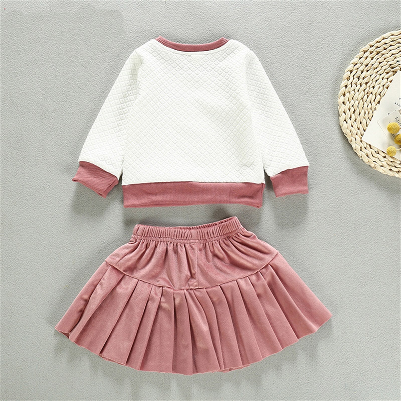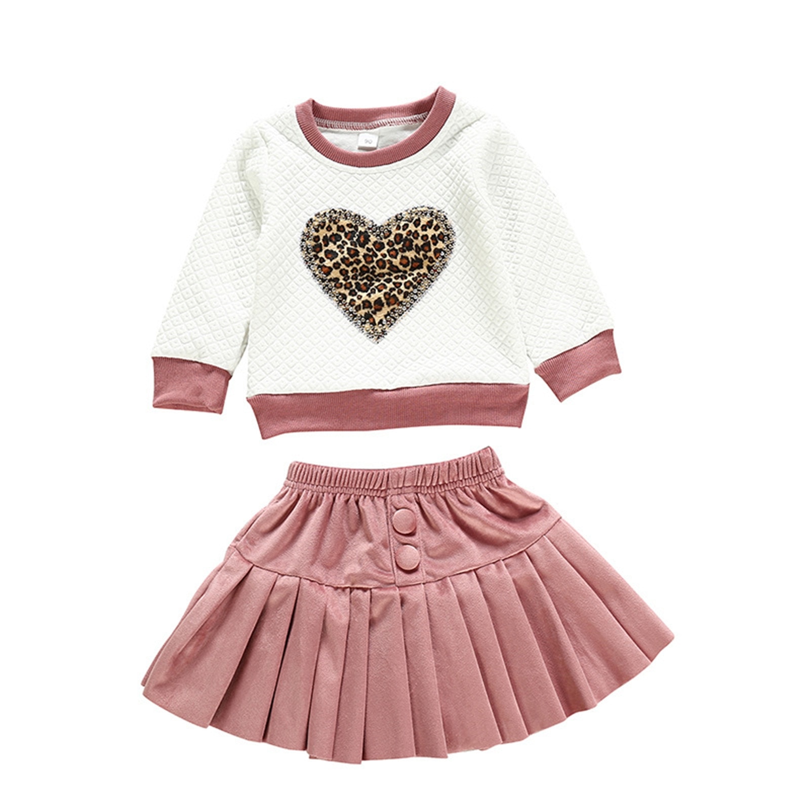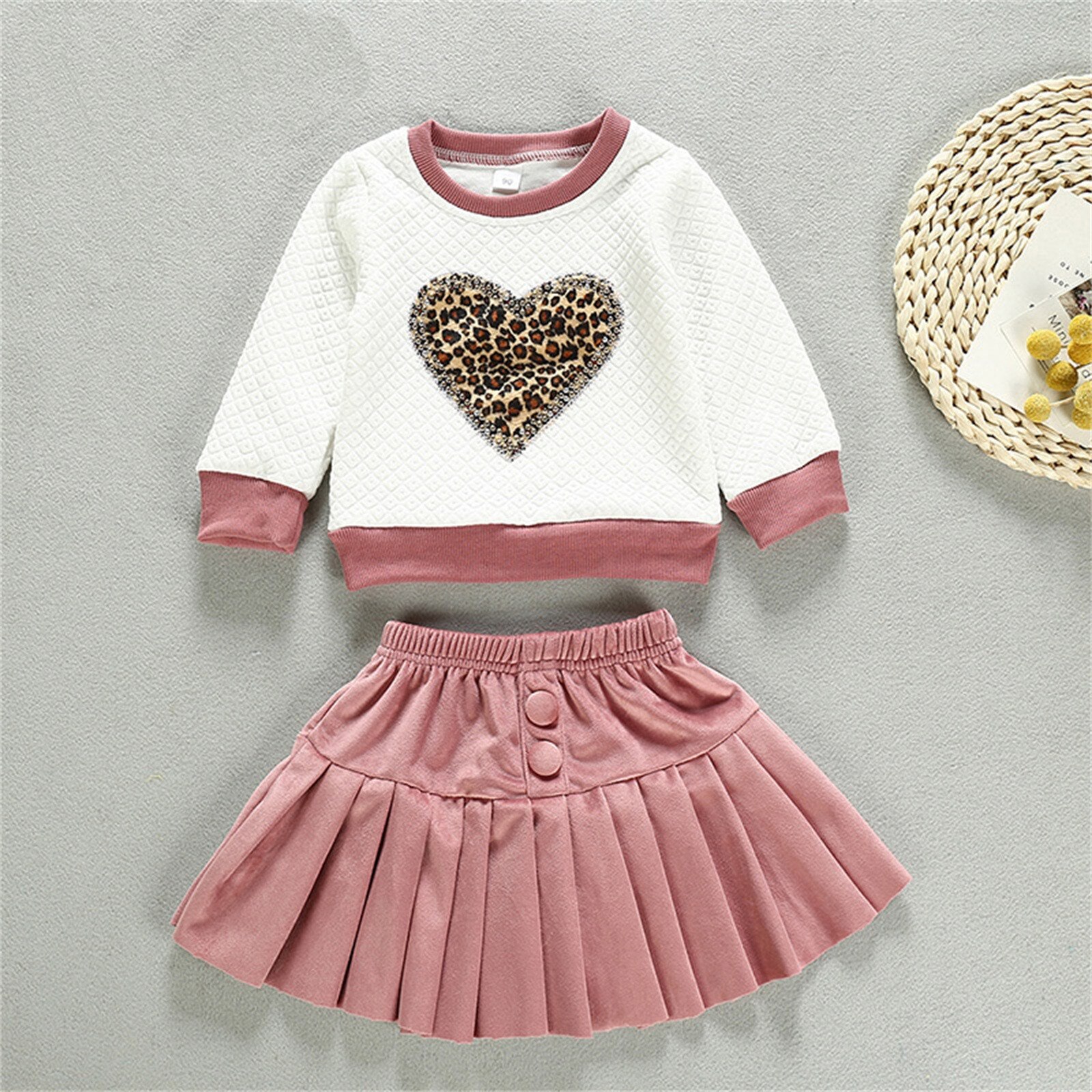День Святого Валентина Дети Малыш Младенческой Девочки с Длинным Рукавом Мультфильм Топы Однотонная Юбка Комплект из 2 ШТ. Наряды