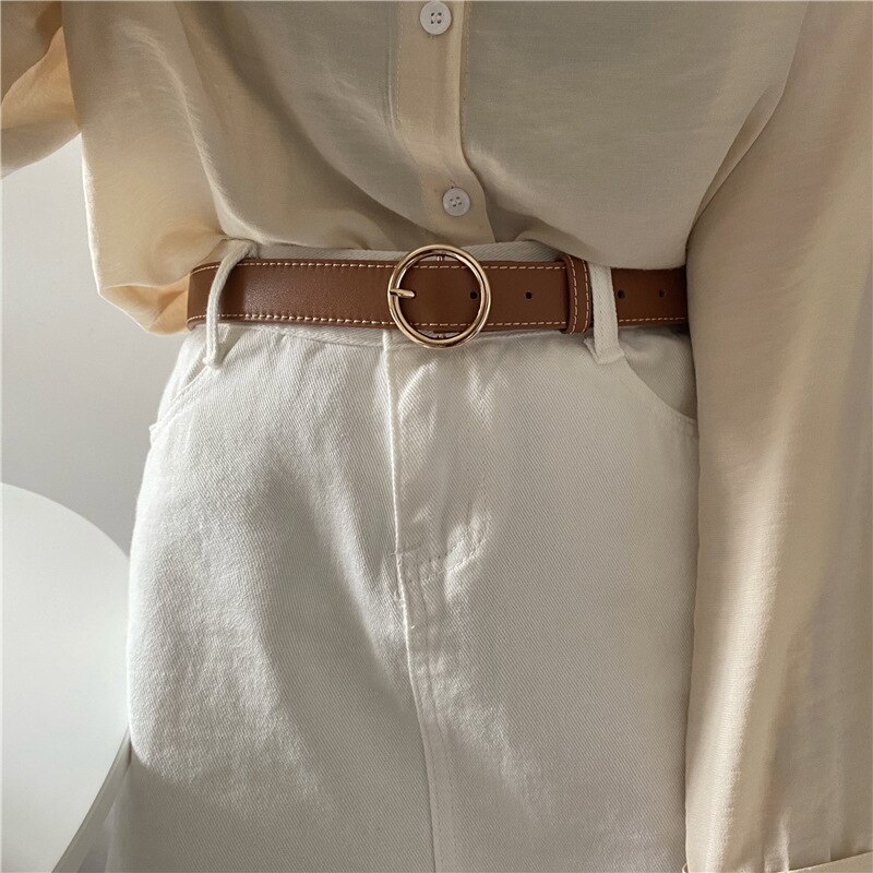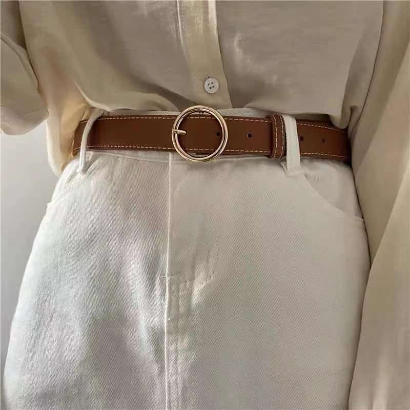 Женский кожаный тонкий ремень, простой металлический Регулируемый ремень с пряжкой-крючком для брюк, платьев, брендовый дизайнерский декоративный пояс