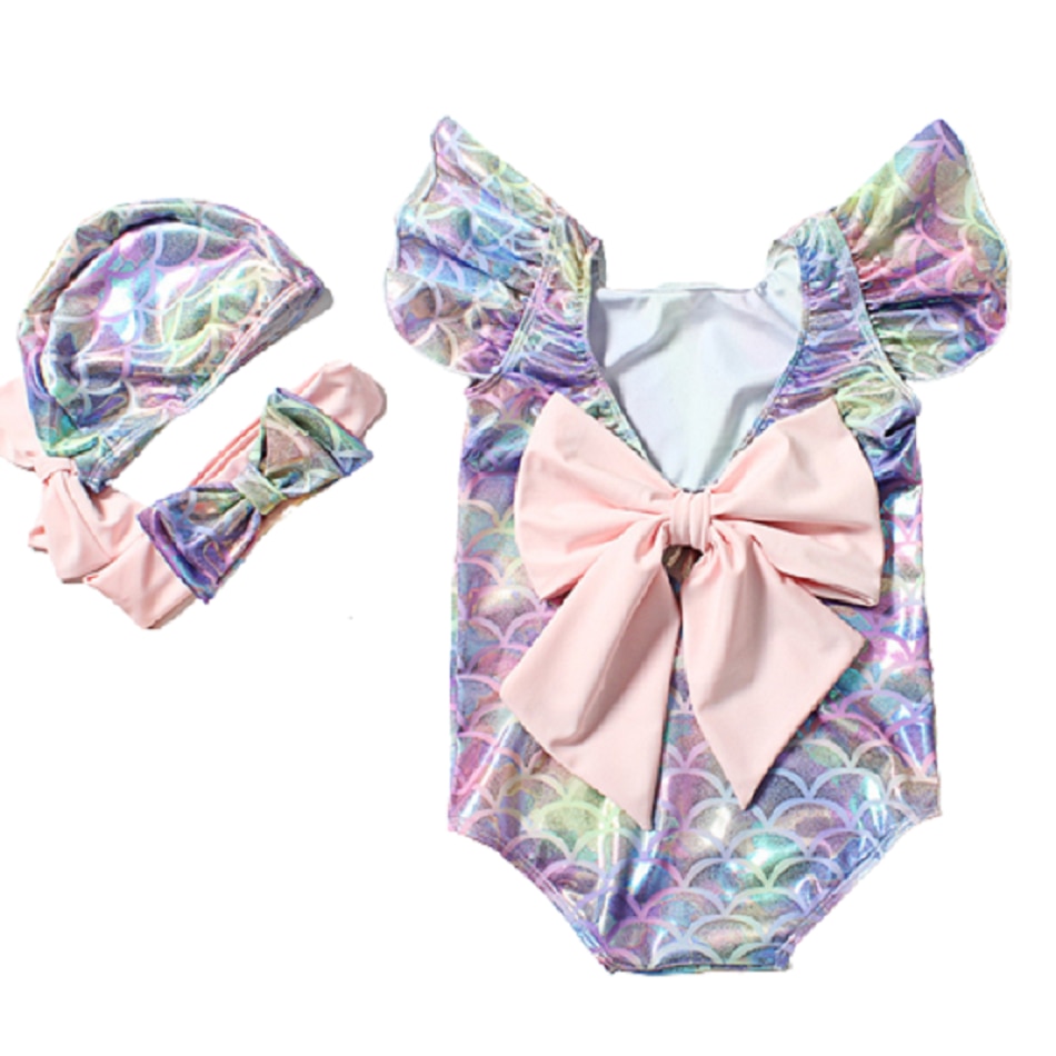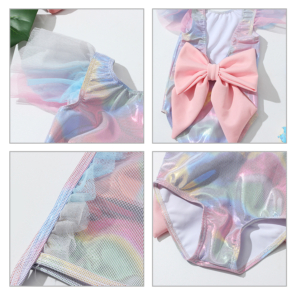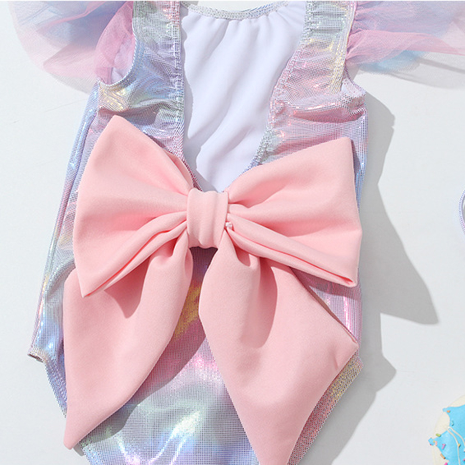 Летний Купальник для девочек Секс Детский купальник с открытой спиной и большим бантом Регулируемые ремни Бикини с открытой спиной и оборками Рукав Детские пляжные купальники
