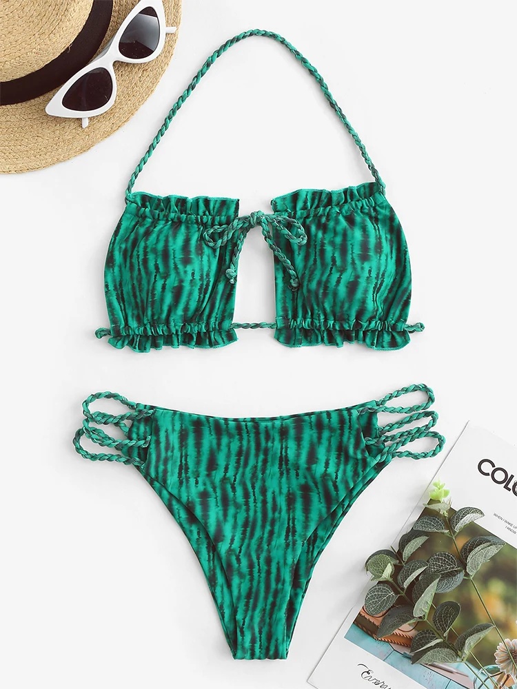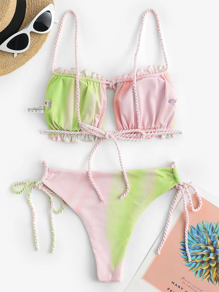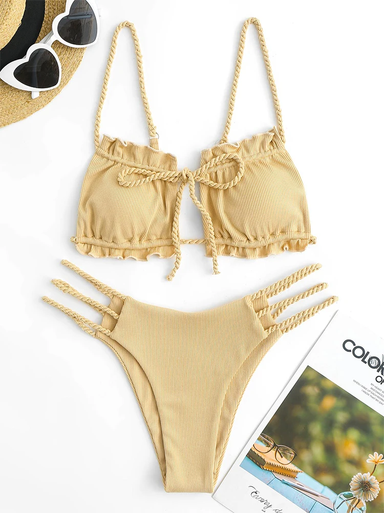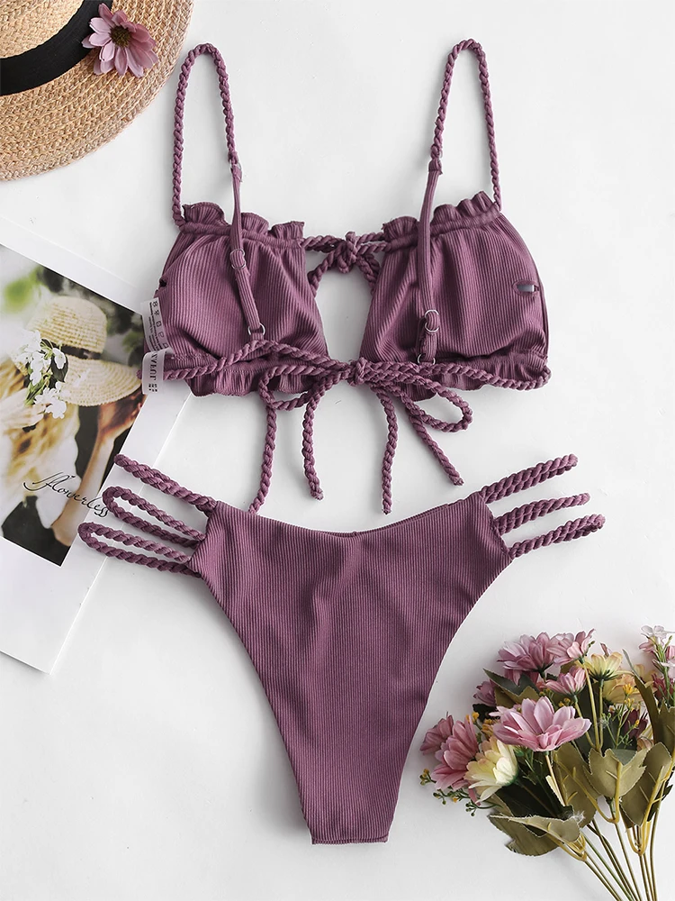 Номер модели Ribbed Braided Tie Bikini Swimwear