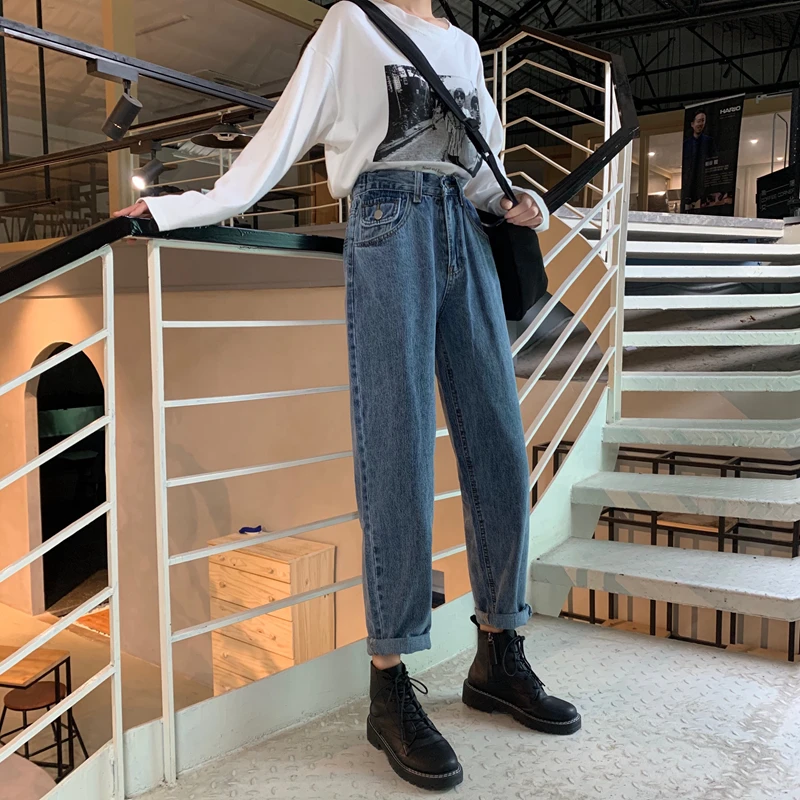 Джинсы весна 2021 новые ретро высокой талией тонкие универсальные джинсы для мам Модные свободные женские брюки