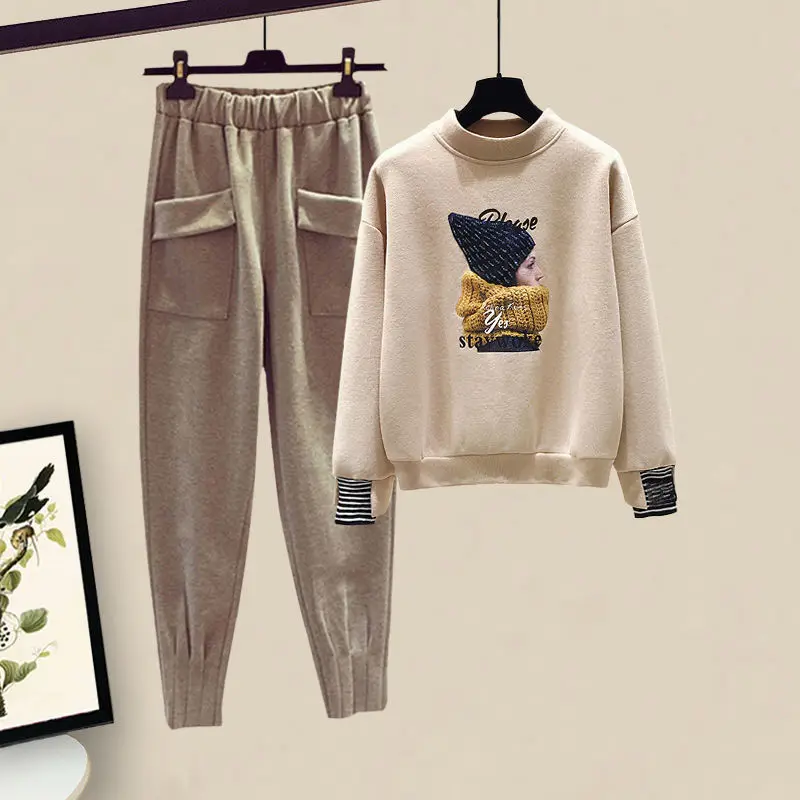 Женский свободный свитер из двух предметов в западном стиле, корейский свободный свитер + модные повседневные спортивные штаны, осень 2020