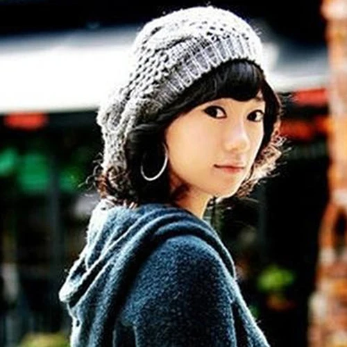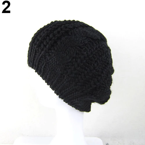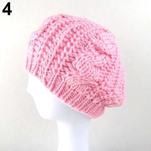 Женский милый вязаный теплый однотонный берет, ручная мешковатая шапка, зимняя шапка, подарок
