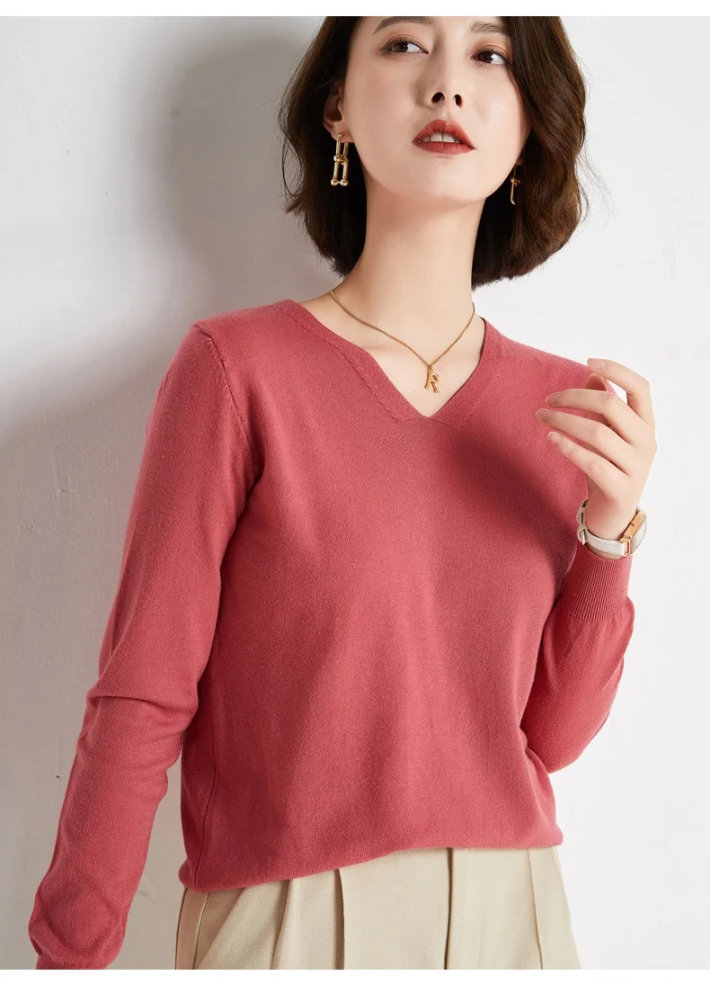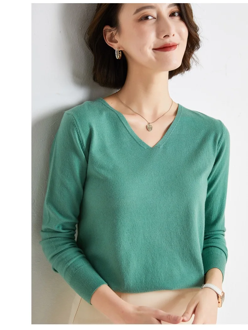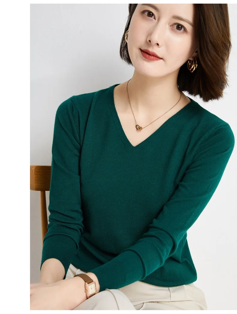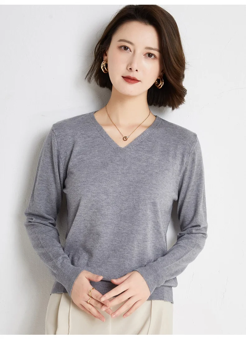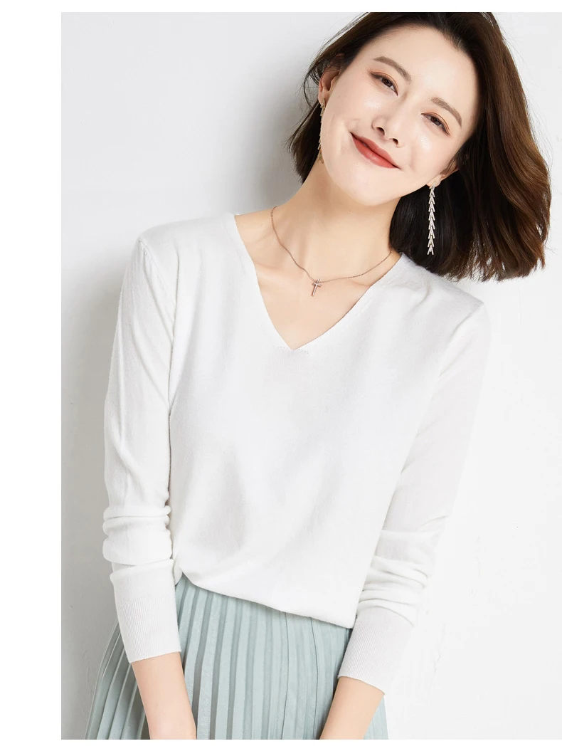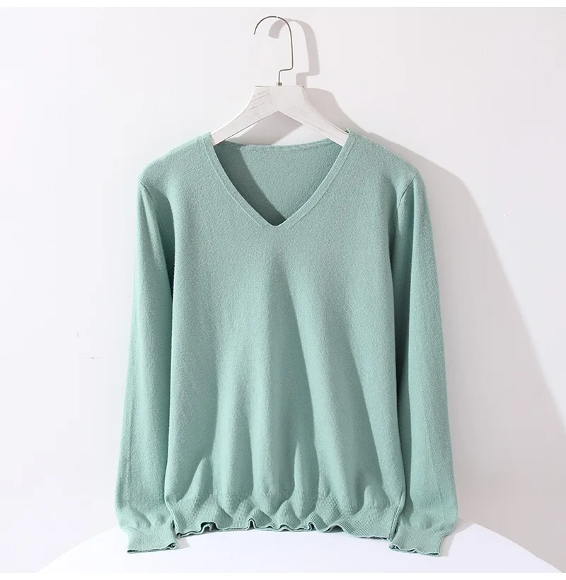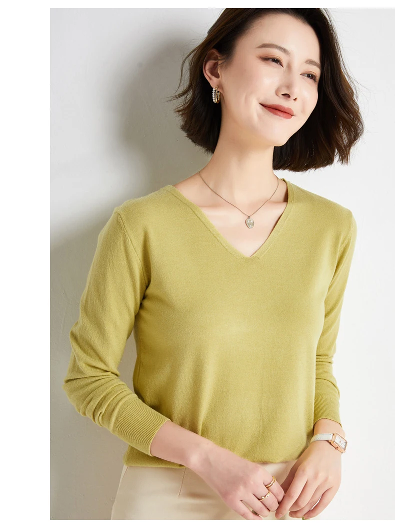 Женский однотонный трикотажный свитер с V-образным вырезом