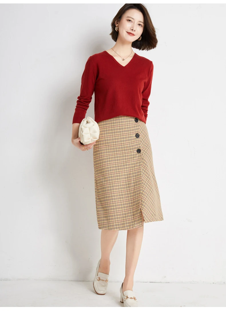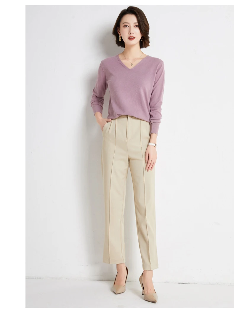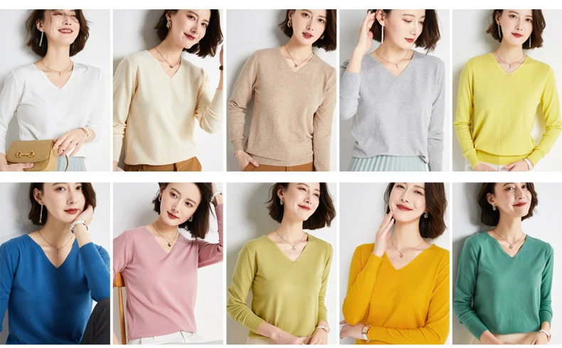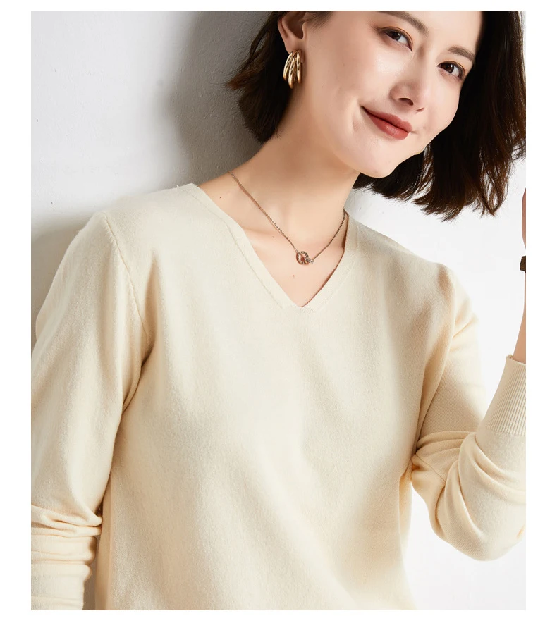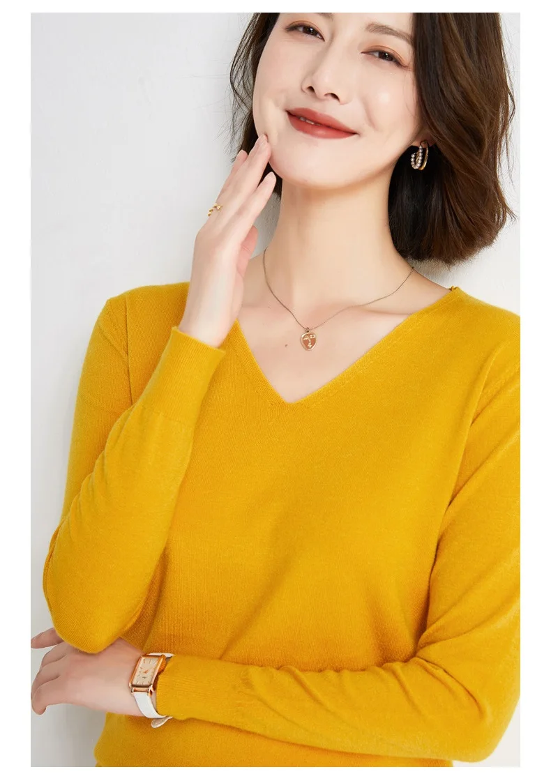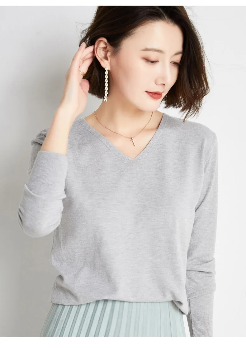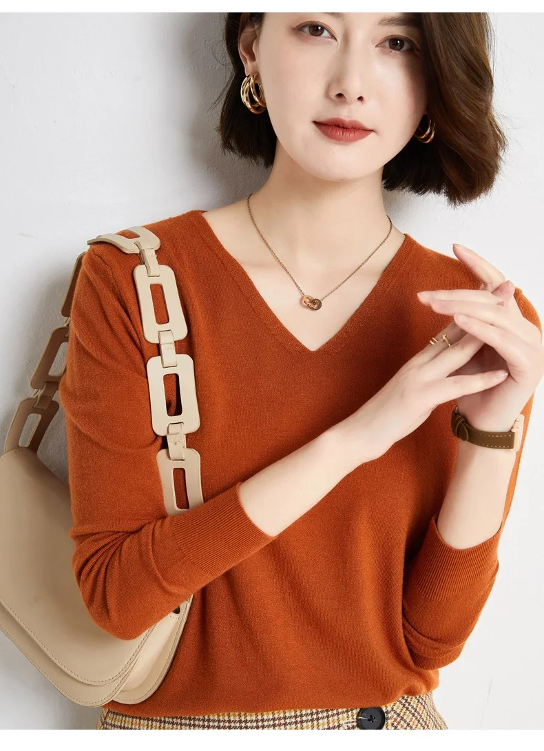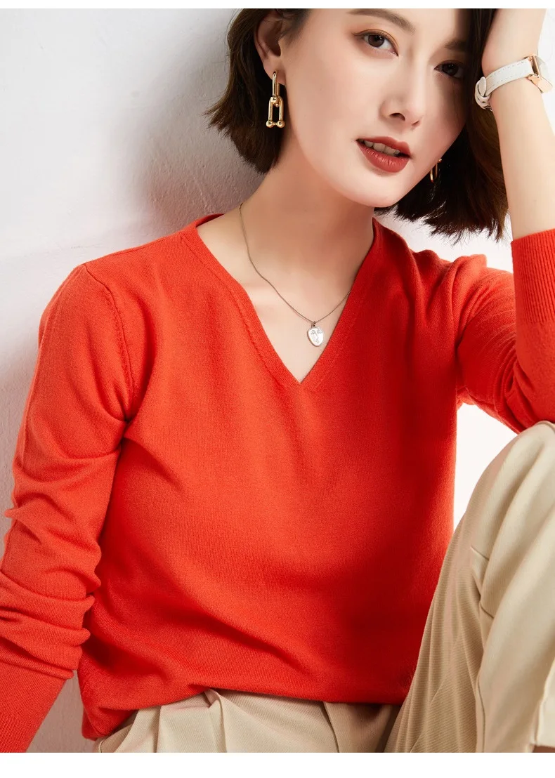 Женский однотонный трикотажный свитер с V-образным вырезом