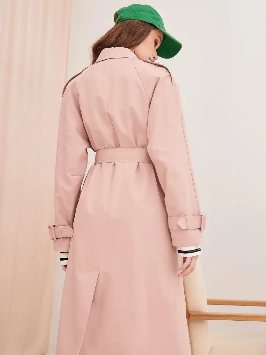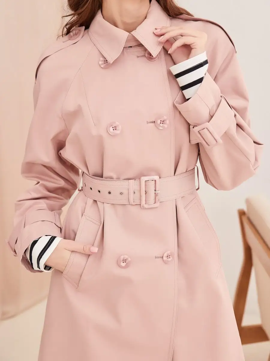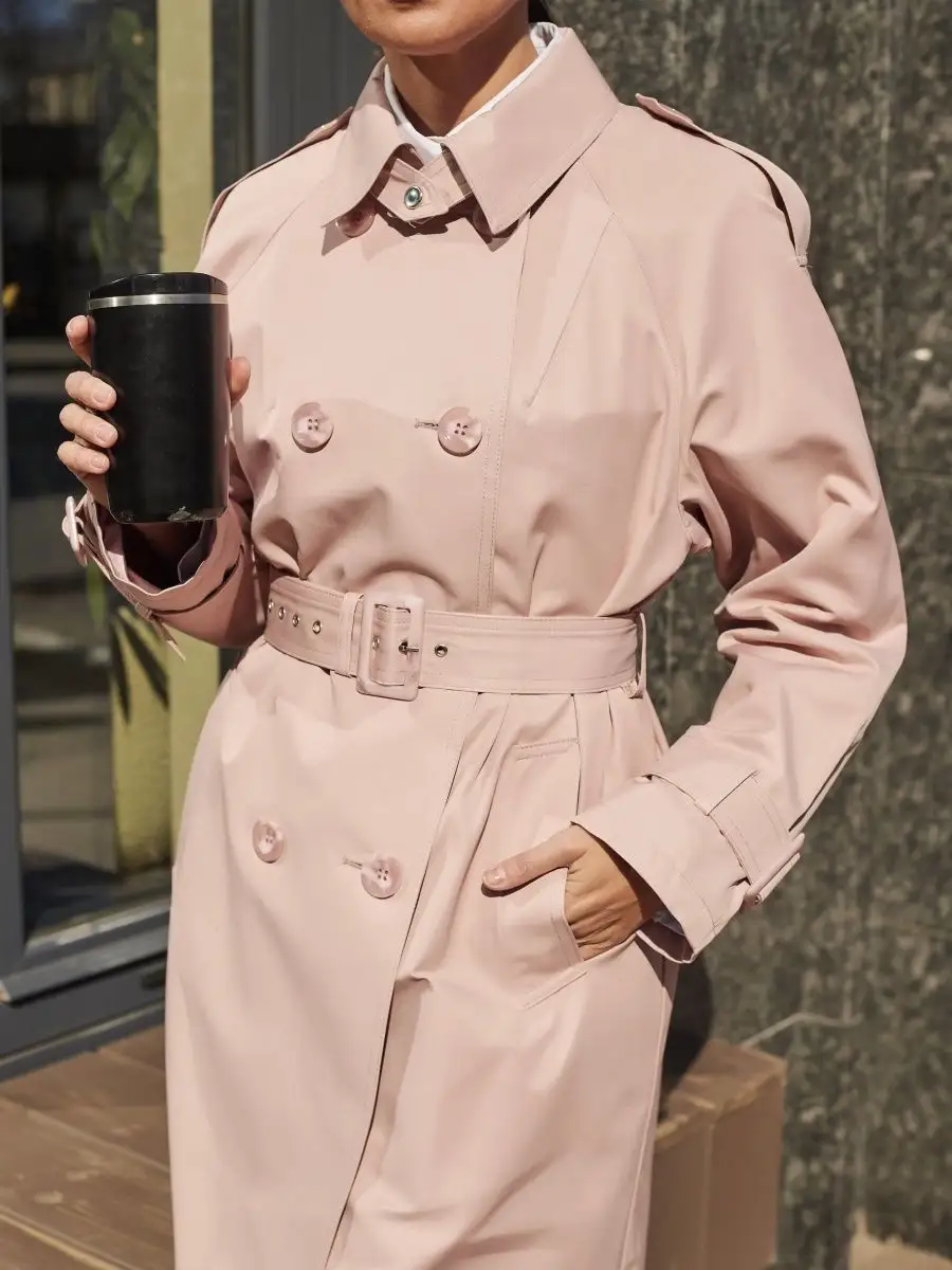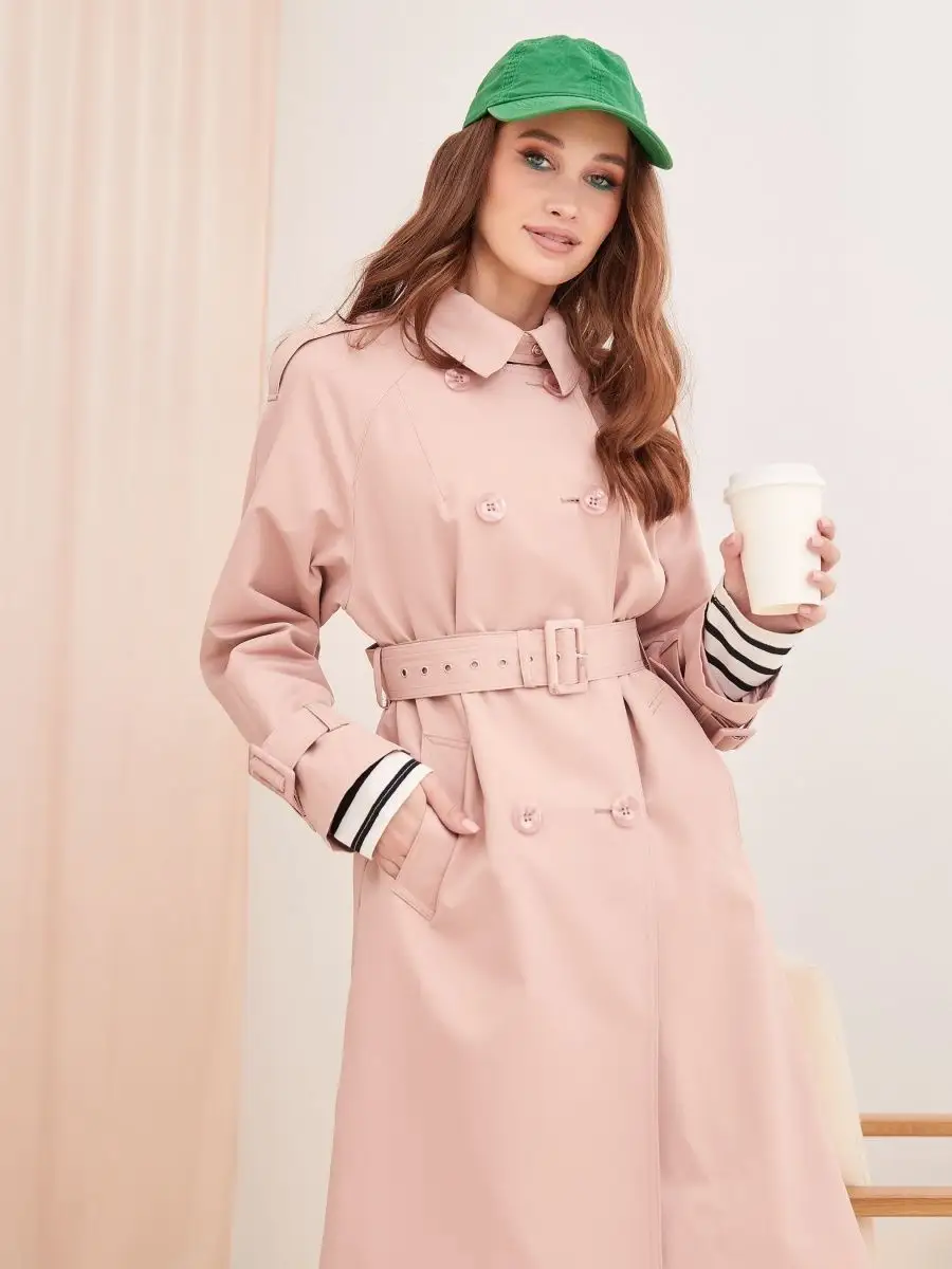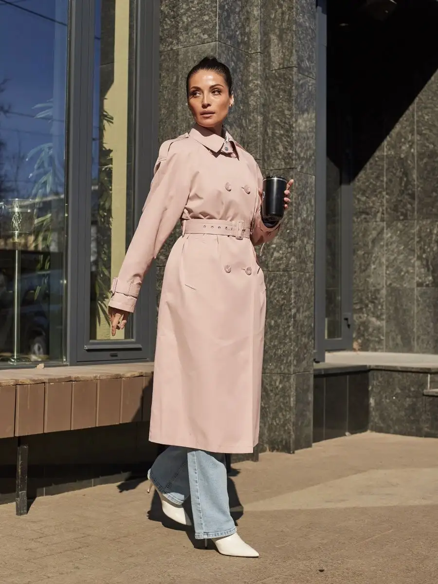 Женский плащ тренч, длинный весенний приталенный тренчкот
