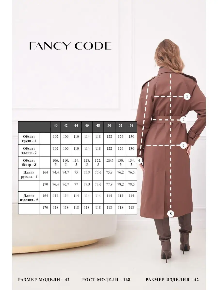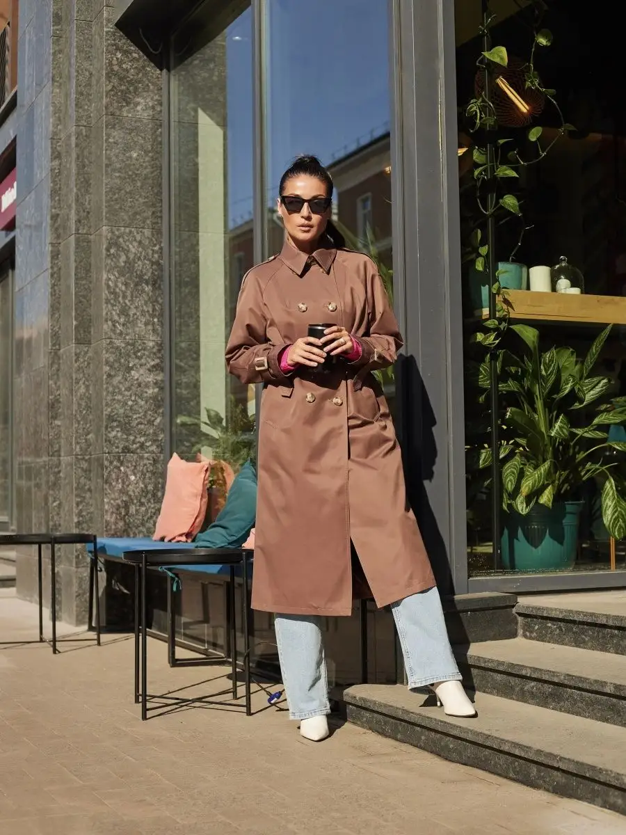 Описание: Женский плащ тренчкот - абсолютный тренд сезона весна лето 2023. Он просто обязан быть в гардеробе каждой женщины, следящей за тенденциями моды. Мы дополнили классическую модель тренча стильными деталями, чтобы сделать Ваш образ еще ярче, женственнее и интереснее. Сзади на спинке фигурная навесная кокетка и средний шов, переходящий в разрез шлицу. Застежка на двубортный ряд пуговиц. По бокам удобные карманы листочки с настрочными концами. Передняя сторона декорирована интересным элементом из ткани с одной стороны. В комплекте с облегченным пальто идет пояс с эффектной пряжкой. Длинные рукава украшены декоративными патами с пряжками, они гармонируют с ремнем создавая единый ансамбль и придают особую изюминку Вашему образу. Обратите внимание длинную куртку тренч оверсайз можно носить двумя способами: с надетым поясом Вы получите приталенную модель, а без пояса получается прямая свободная ветровка. Плащ пыльник элегантной длины до колена прекрасно сочетается как с женственными сапожками или ботильонами на шпильках, так и со спортивной молодежной обувью. Будьте неотразимы этой весной, а наш дождевой casual плащ парка Вам в этом поможет! Верхняя одежда, плащ-дождевик рассчитан на теплую весеннюю и осеннюю погоду, а также на прохладные летние вечера. Сезон: демисезон, весна, осень, лето. Демисезонный тренчи весна-осень представлен в четырех трендовых оттенках: светлый серый, цветной зеленый оливковый хаки, кофейный коричневый и темно молочный бежевый мокко. В размерной сетке есть френч дождевик больших размеров для полных дам: 50, 52, 54, 56. Большой размер подойдет для беременных (беременным). Материал: хлопок с добавлением полиэстера. Бренд "FANCY CODE" - производит верхнюю одежду для женщин высокого премиум качества. Собственное производство В России со строгим контролем качества на каждом этапе. Легкий плащь трен кот трапеция от нашего бренда Вы будете носить на протяжении многих сезонов. Стильное пальто-тренч осень-весна с подкладом из полиэстера актуален как для девочки подростка (подростковый), так и для женщин более старшего возраста. Не знаете что подарить маме, бабушке, подруге, сестре, жене или любимой девушке на восьмое марта, 8 марта, день рождения, др, другой праздник или просто без повода? Денские плащи и тренчкоты от дождя от бренда "FANCY CODE" оригинальный и красивый подарок. Презентуйте ей удлиненный плащ пиджак и уверены она оценит Ваш безупречный вкус и заботу.