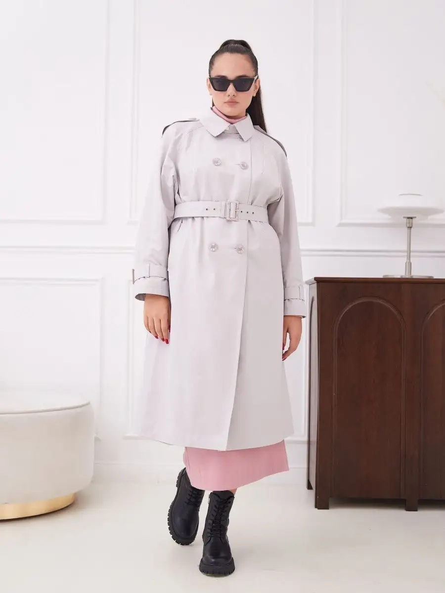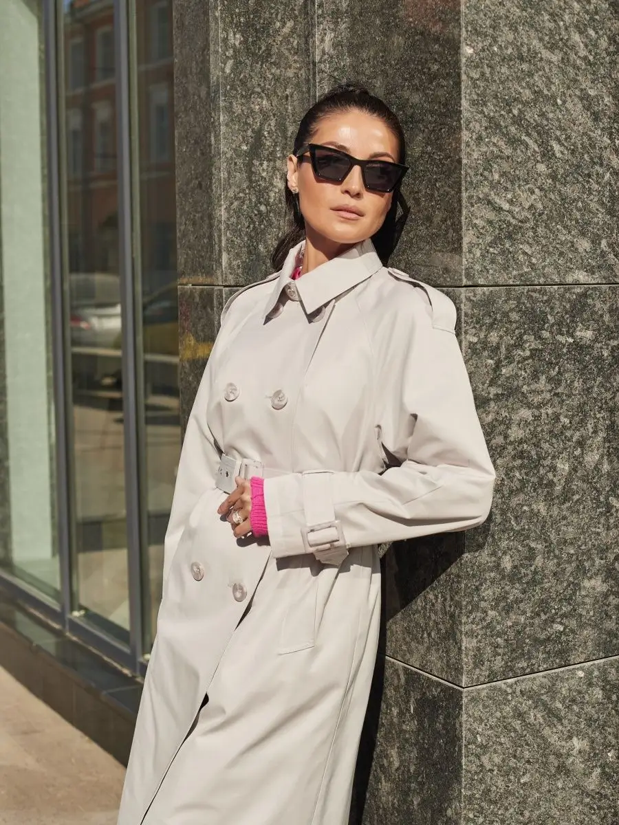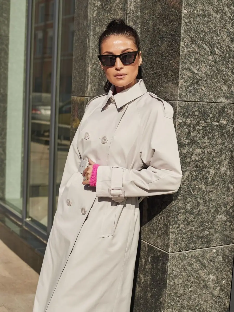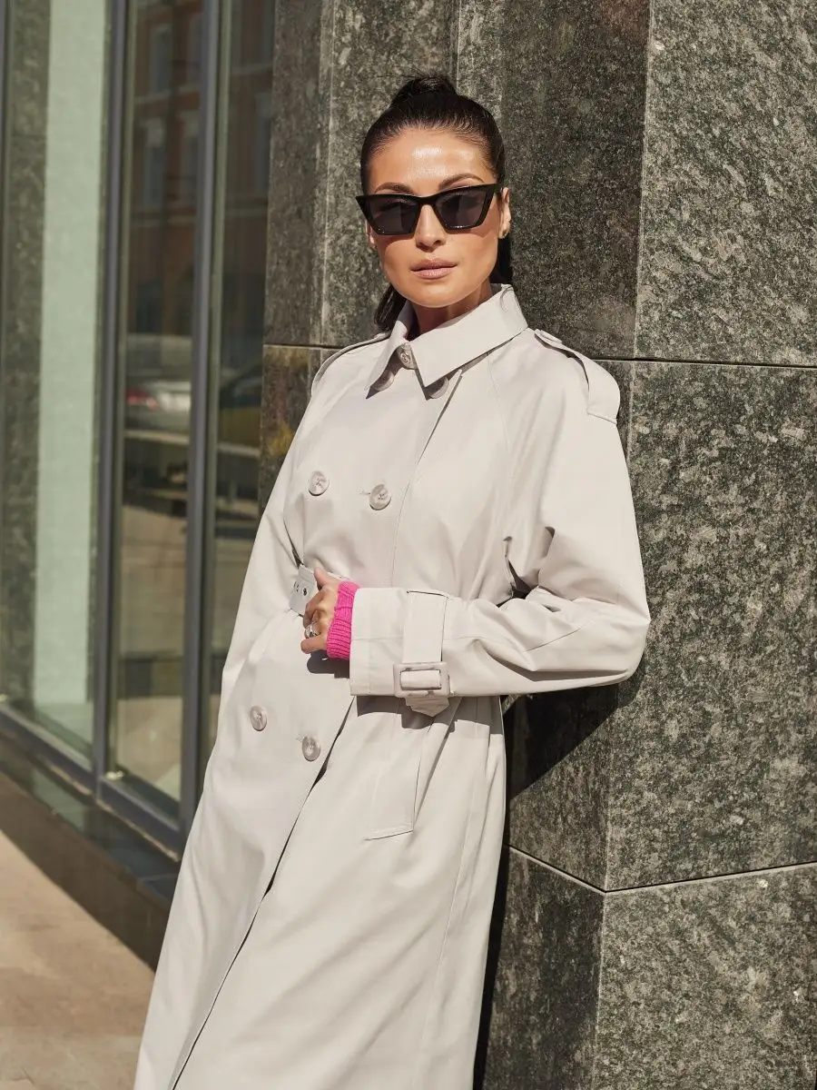 Описание: Женский плащ тренчкот - абсолютный тренд сезона весна лето 2023. Он просто обязан быть в гардеробе каждой женщины, следящей за тенденциями моды. Мы дополнили классическую модель тренча стильными деталями, чтобы сделать Ваш образ еще ярче, женственнее и интереснее. Сзади на спинке фигурная навесная кокетка и средний шов, переходящий в разрез шлицу. Застежка на двубортный ряд пуговиц. По бокам удобные карманы листочки с настрочными концами. Передняя сторона декорирована интересным элементом из ткани с одной стороны. В комплекте с облегченным пальто идет пояс с эффектной пряжкой. Длинные рукава украшены декоративными патами с пряжками, они гармонируют с ремнем создавая единый ансамбль и придают особую изюминку Вашему образу. Обратите внимание длинную куртку тренч оверсайз можно носить двумя способами: с надетым поясом Вы получите приталенную модель, а без пояса получается прямая свободная ветровка. Плащ пыльник элегантной длины до колена прекрасно сочетается как с женственными сапожками или ботильонами на шпильках, так и со спортивной молодежной обувью. Будьте неотразимы этой весной, а наш дождевой casual плащ парка Вам в этом поможет! Верхняя одежда, плащ-дождевик рассчитан на теплую весеннюю и осеннюю погоду, а также на прохладные летние вечера. Сезон: демисезон, весна, осень, лето. Демисезонный тренчи весна-осень представлен в четырех трендовых оттенках: светлый серый, цветной зеленый оливковый хаки, кофейный коричневый и темно молочный бежевый мокко. В размерной сетке есть френч дождевик больших размеров для полных дам: 50, 52, 54, 56. Большой размер подойдет для беременных (беременным). Материал: хлопок с добавлением полиэстера. Бренд "FANCY CODE" - производит верхнюю одежду для женщин высокого премиум качества. Собственное производство В России со строгим контролем качества на каждом этапе. Легкий плащь трен кот трапеция от нашего бренда Вы будете носить на протяжении многих сезонов. Стильное пальто-тренч осень-весна с подкладом из полиэстера актуален как для девочки подростка (подростковый), так и для женщин более старшего возраста. Не знаете что подарить маме, бабушке, подруге, сестре, жене или любимой девушке на восьмое марта, 8 марта, день рождения, др, другой праздник или просто без повода? Денские плащи и тренчкоты от дождя от бренда "FANCY CODE" оригинальный и красивый подарок. Презентуйте ей удлиненный плащ пиджак и уверены она оценит Ваш безупречный вкус и заботу.