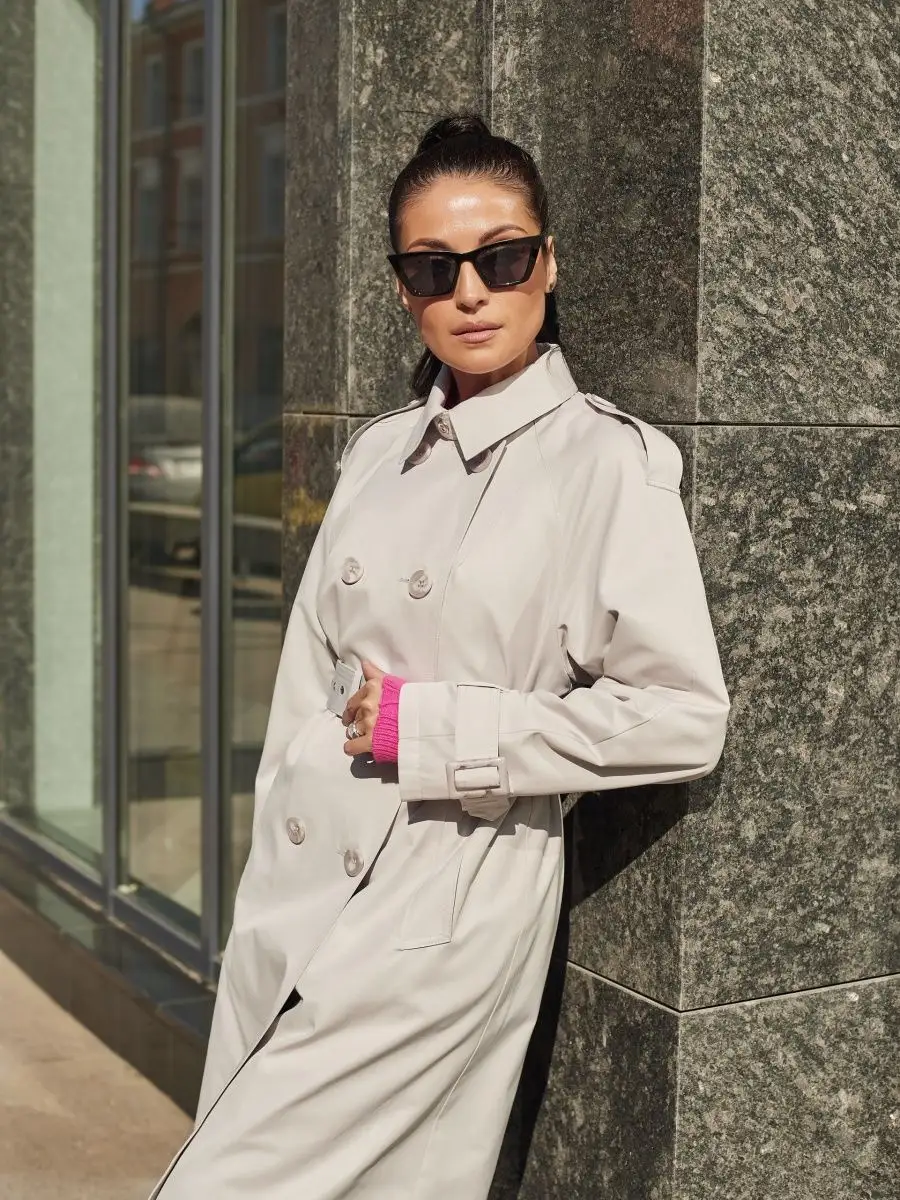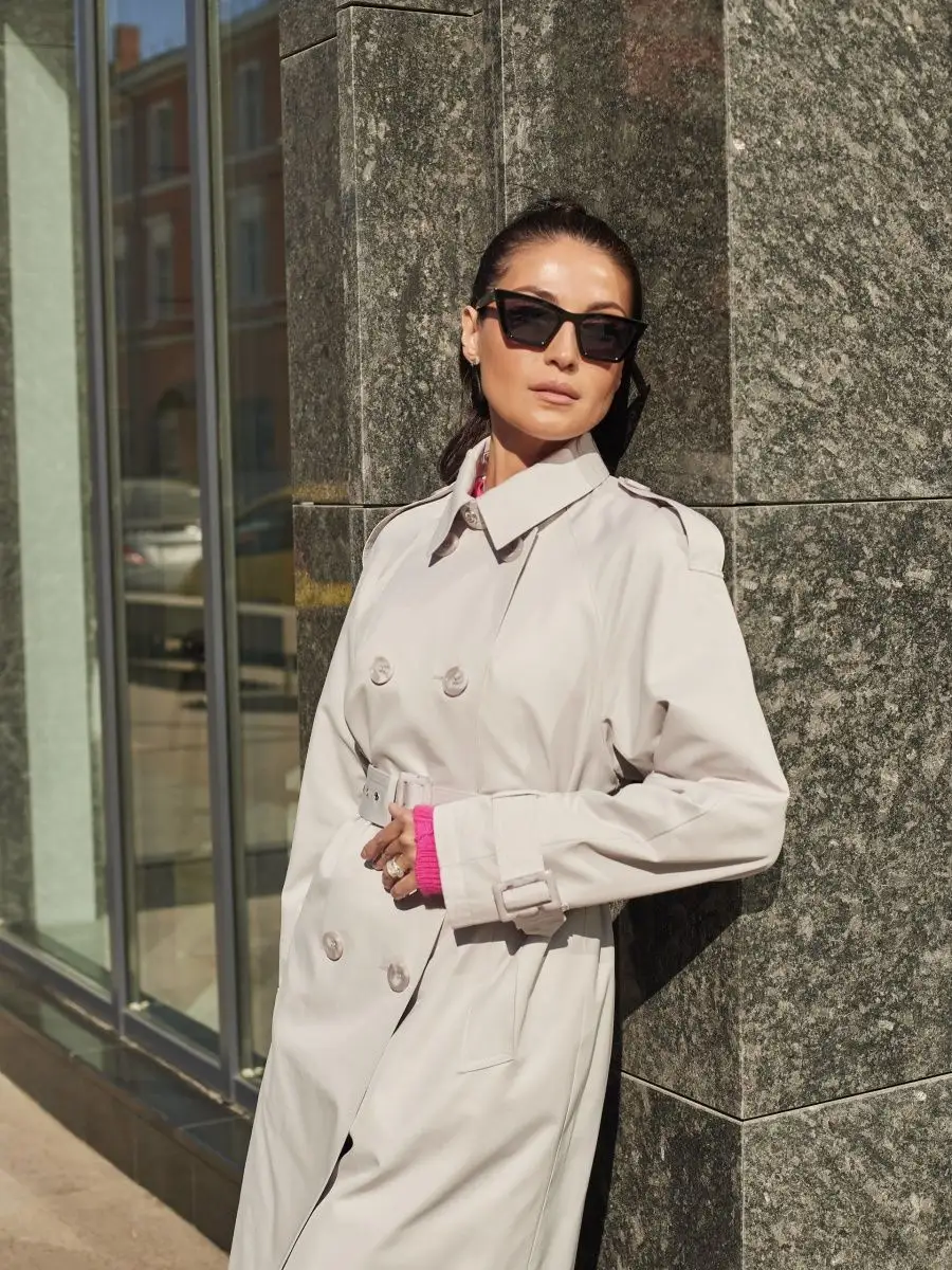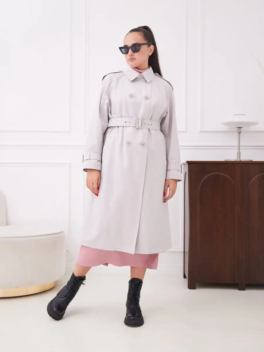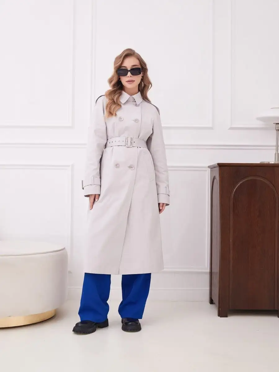 Описание: Женский плащ тренчкот - абсолютный тренд сезона весна лето 2023. Он просто обязан быть в гардеробе каждой женщины, следящей за тенденциями моды. Мы дополнили классическую модель тренча стильными деталями, чтобы сделать Ваш образ еще ярче, женственнее и интереснее. Сзади на спинке фигурная навесная кокетка и средний шов, переходящий в разрез шлицу. Застежка на двубортный ряд пуговиц. По бокам удобные карманы листочки с настрочными концами. Передняя сторона декорирована интересным элементом из ткани с одной стороны. В комплекте с облегченным пальто идет пояс с эффектной пряжкой. Длинные рукава украшены декоративными патами с пряжками, они гармонируют с ремнем создавая единый ансамбль и придают особую изюминку Вашему образу. Обратите внимание длинную куртку тренч оверсайз можно носить двумя способами: с надетым поясом Вы получите приталенную модель, а без пояса получается прямая свободная ветровка. Плащ пыльник элегантной длины до колена прекрасно сочетается как с женственными сапожками или ботильонами на шпильках, так и со спортивной молодежной обувью. Будьте неотразимы этой весной, а наш дождевой casual плащ парка Вам в этом поможет! Верхняя одежда, плащ-дождевик рассчитан на теплую весеннюю и осеннюю погоду, а также на прохладные летние вечера. Сезон: демисезон, весна, осень, лето. Демисезонный тренчи весна-осень представлен в четырех трендовых оттенках: светлый серый, цветной зеленый оливковый хаки, кофейный коричневый и темно молочный бежевый мокко. В размерной сетке есть френч дождевик больших размеров для полных дам: 50, 52, 54, 56. Большой размер подойдет для беременных (беременным). Материал: хлопок с добавлением полиэстера. Бренд "FANCY CODE" - производит верхнюю одежду для женщин высокого премиум качества. Собственное производство В России со строгим контролем качества на каждом этапе. Легкий плащь трен кот трапеция от нашего бренда Вы будете носить на протяжении многих сезонов. Стильное пальто-тренч осень-весна с подкладом из полиэстера актуален как для девочки подростка (подростковый), так и для женщин более старшего возраста. Не знаете что подарить маме, бабушке, подруге, сестре, жене или любимой девушке на восьмое марта, 8 марта, день рождения, др, другой праздник или просто без повода? Денские плащи и тренчкоты от дождя от бренда "FANCY CODE" оригинальный и красивый подарок. Презентуйте ей удлиненный плащ пиджак и уверены она оценит Ваш безупречный вкус и заботу.