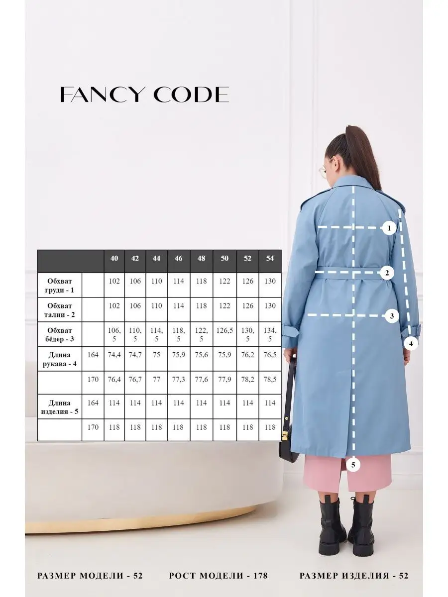 Описание: Женский плащ тренчкот - абсолютный тренд сезона весна лето 2023. Он просто обязан быть в гардеробе каждой женщины, следящей за тенденциями моды. Мы дополнили классическую модель тренча стильными деталями, чтобы сделать Ваш образ еще ярче, женственнее и интереснее. Сзади на спинке фигурная навесная кокетка и средний шов, переходящий в разрез шлицу. Застежка на двубортный ряд пуговиц. По бокам удобные карманы листочки с настрочными концами. Передняя сторона декорирована интересным элементом из ткани с одной стороны. В комплекте с облегченным пальто идет пояс с эффектной пряжкой. Длинные рукава украшены декоративными патами с пряжками, они гармонируют с ремнем создавая единый ансамбль и придают особую изюминку Вашему образу. Обратите внимание длинную куртку тренч оверсайз можно носить двумя способами: с надетым поясом Вы получите приталенную модель, а без пояса получается прямая свободная ветровка. Плащ пыльник элегантной длины до колена прекрасно сочетается как с женственными сапожками или ботильонами на шпильках, так и со спортивной молодежной обувью. Будьте неотразимы этой весной, а наш дождевой casual плащ парка Вам в этом поможет! Верхняя одежда, плащ-дождевик рассчитан на теплую весеннюю и осеннюю погоду, а также на прохладные летние вечера. Сезон: демисезон, весна, осень, лето. Демисезонный тренчи весна-осень представлен в четырех трендовых оттенках: светлый серый, цветной зеленый оливковый хаки, кофейный коричневый и темно молочный бежевый мокко. В размерной сетке есть френч дождевик больших размеров для полных дам: 50, 52, 54, 56. Большой размер подойдет для беременных (беременным). Материал: хлопок с добавлением полиэстера. Бренд "FANCY CODE" - производит верхнюю одежду для женщин высокого премиум качества. Собственное производство В России со строгим контролем качества на каждом этапе. Легкий плащь трен кот трапеция от нашего бренда Вы будете носить на протяжении многих сезонов. Стильное пальто-тренч осень-весна с подкладом из полиэстера актуален как для девочки подростка (подростковый), так и для женщин более старшего возраста. Не знаете что подарить маме, бабушке, подруге, сестре, жене или любимой девушке на восьмое марта, 8 марта, день рождения, др, другой праздник или просто без повода? Денские плащи и тренчкоты от дождя от бренда "FANCY CODE" оригинальный и красивый подарок. Презентуйте ей удлиненный плащ пиджак и уверены она оценит Ваш безупречный вкус и заботу.