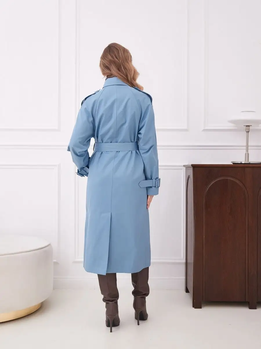 Женский плащ тренч, длинный весенний приталенный тренчкот