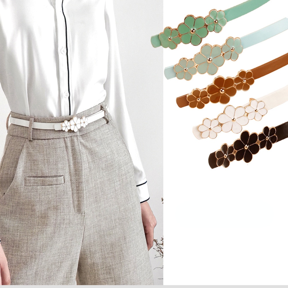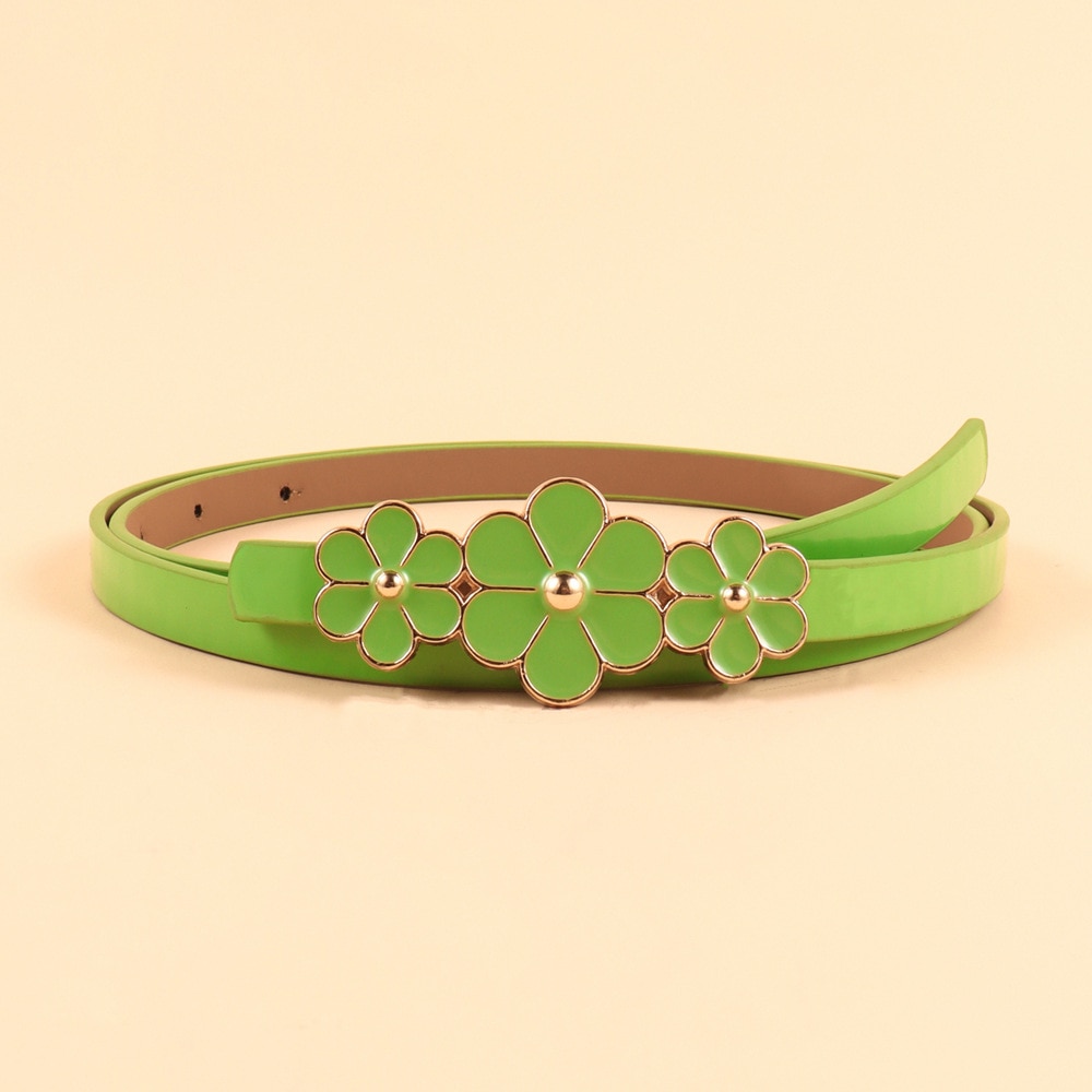 Женский ремень из искусственной кожи, маленький яркий цветочный декор, зеленое платье с золотой пряжкой, повседневный женский свитер для платья