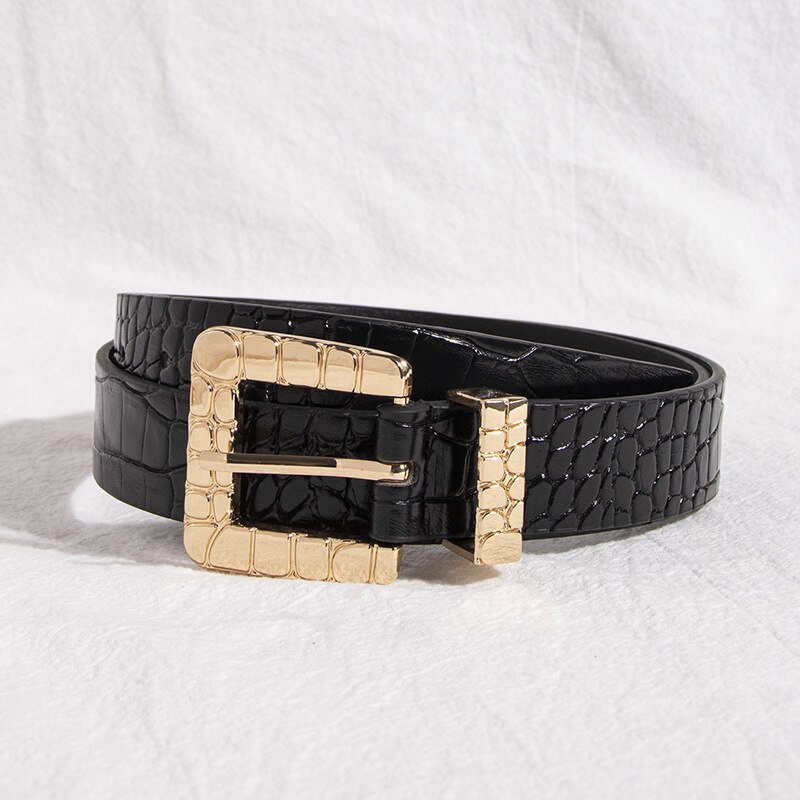 Новые Женские квадратные пряжки с крокодиловым узором из искусственной кожи, черные ремни, шикарный модный женский пояс