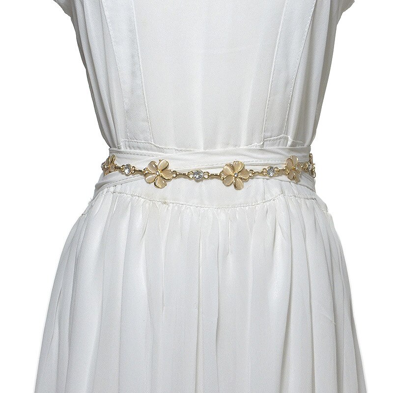 Женский ремень с металлической цепочкой и кристаллами, новинка 2023, красивый ремень для платья
