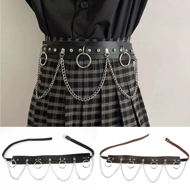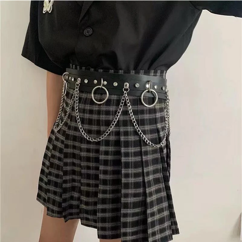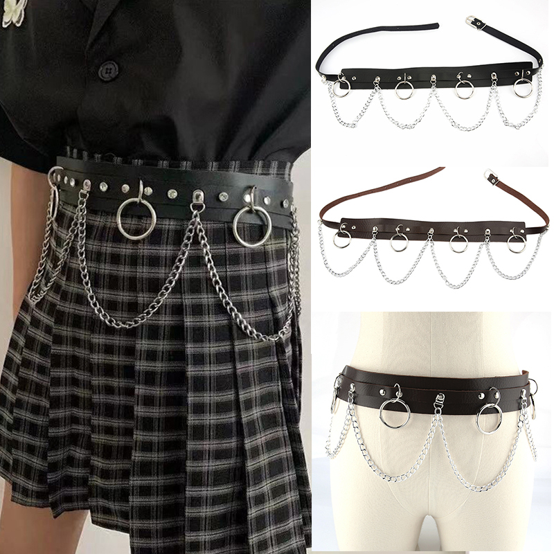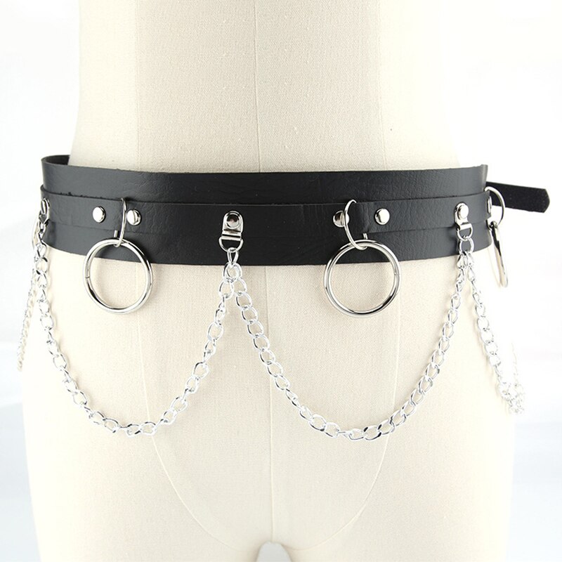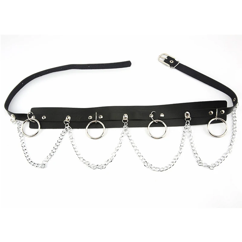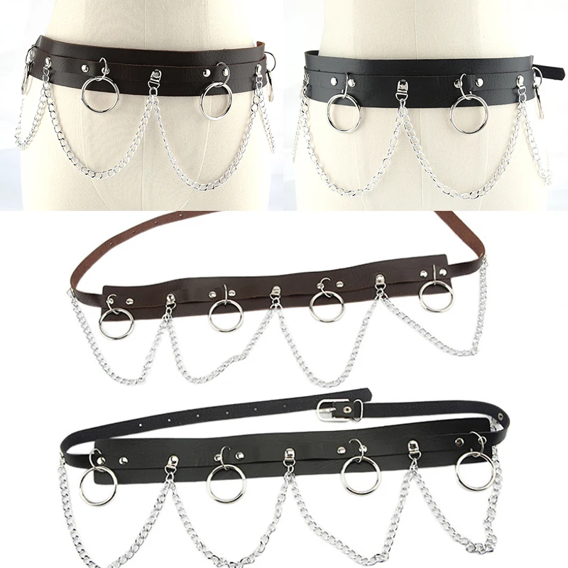 Женский ремень в готическом стиле, регулируемый ремень из искусственной кожи с цепочкой, в стиле Харадзюку и панк, для танцев на дискотеке