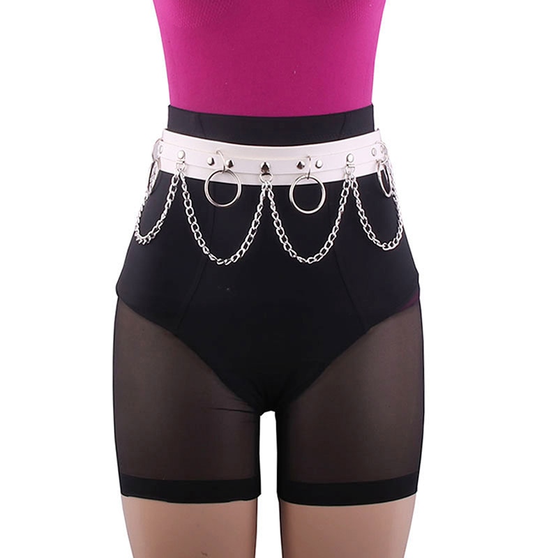 Сексуальный женский Готический хип-хоп пояс с цепочкой Harajuku Punk Style Jk Талия Регулируемая Дискотека Танцы Pu Платье Джинсы Талия Цепь