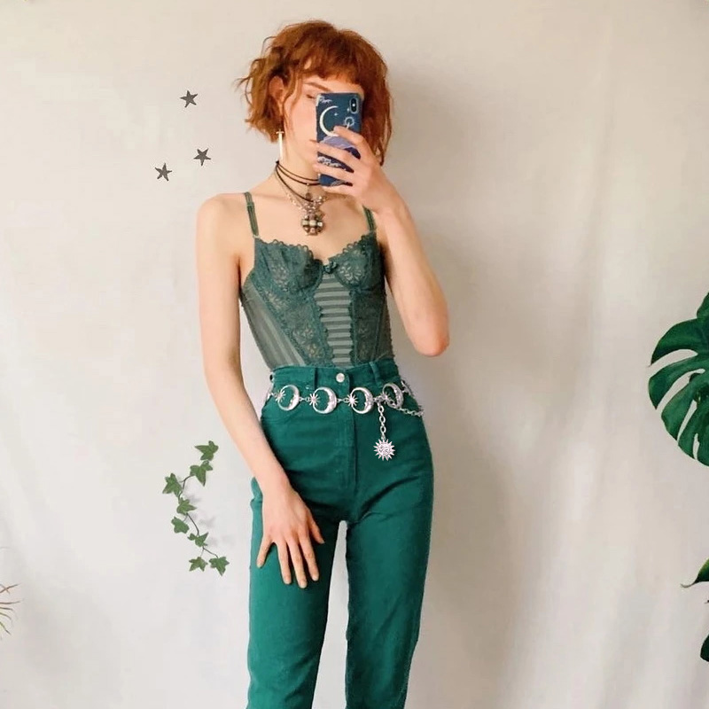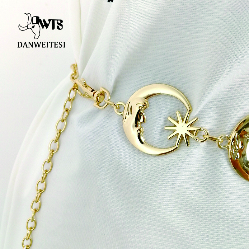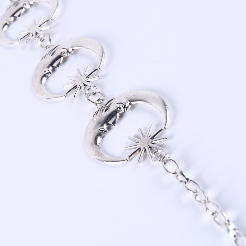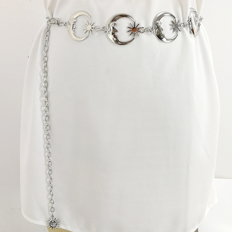 Женский ремень в стиле панк [DWTS], серебристая подвеска в виде Луны и солнца, в винтажном стиле