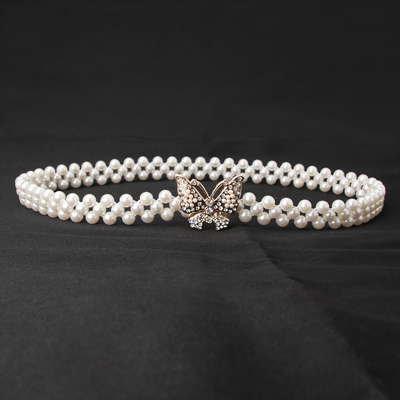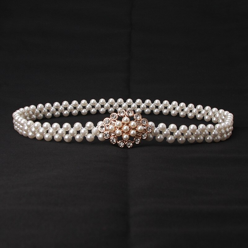 Женский ремень, женский ремень, модный эластичный пояс, украшенный акриловыми жемчужинами, милые цветочные ремни