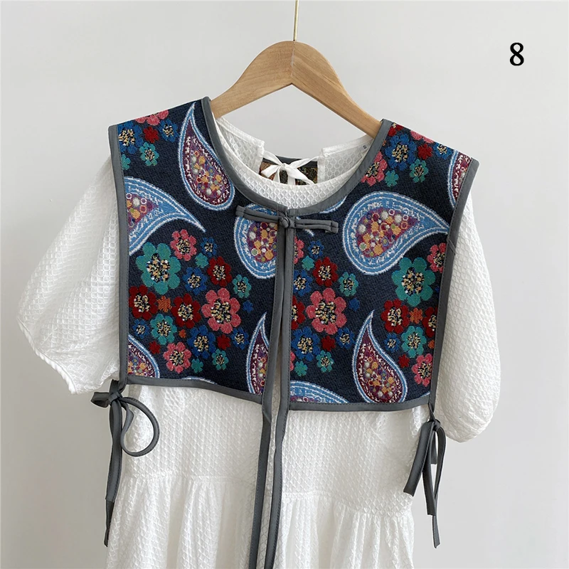Женский съемный воротник со шнуровкой, Цветочная вышивка, искусственный воротник, аксессуары для одежды, жилет, куртка, Искусственный галстук, винтажный