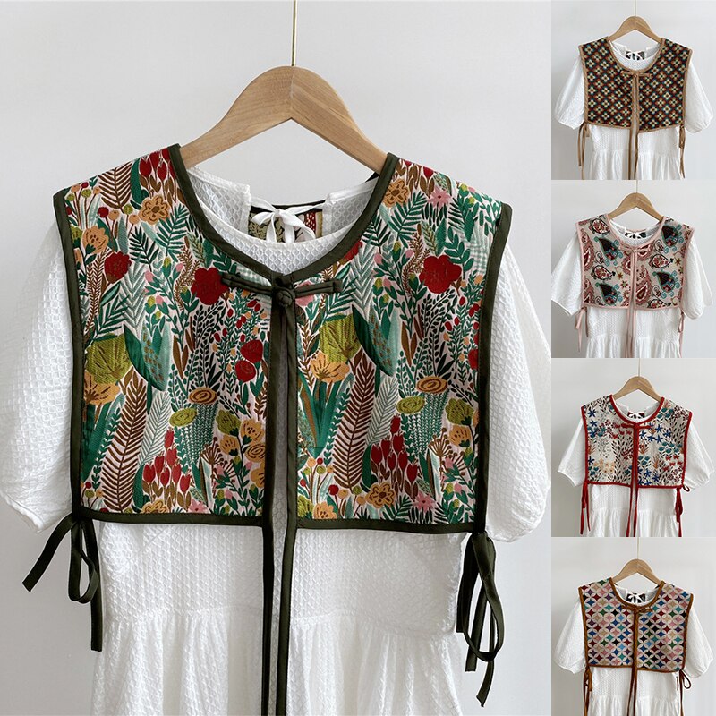 Шнуровка Съемные воротники Аксессуары для одежды Жилет Куртка Шаль Рубашка Ложный галстук Поддельный воротник Винтаж Цветочная вышивка Женщины