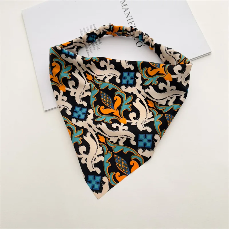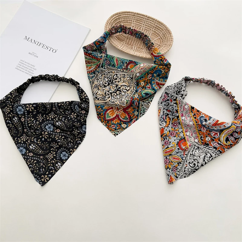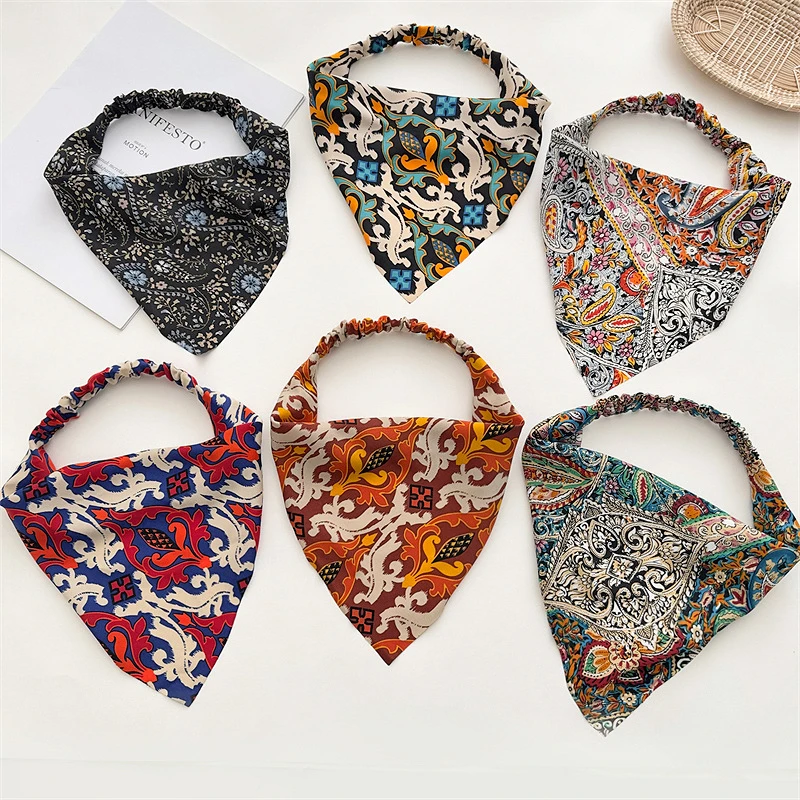 Аксессуары для волос Эластичные резинки для волос с богемным принтом Винтажный треугольный шарф на голову Повязка на голову Резинки для волос Мягкие ручной работы
