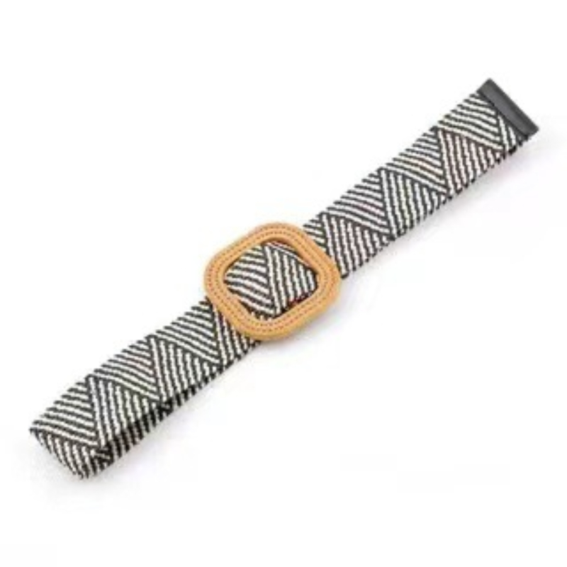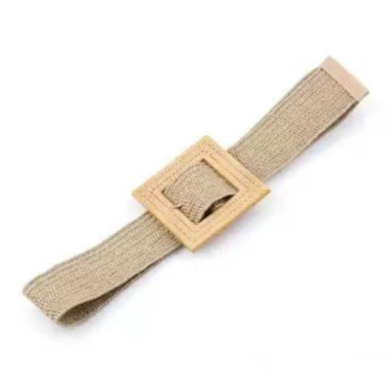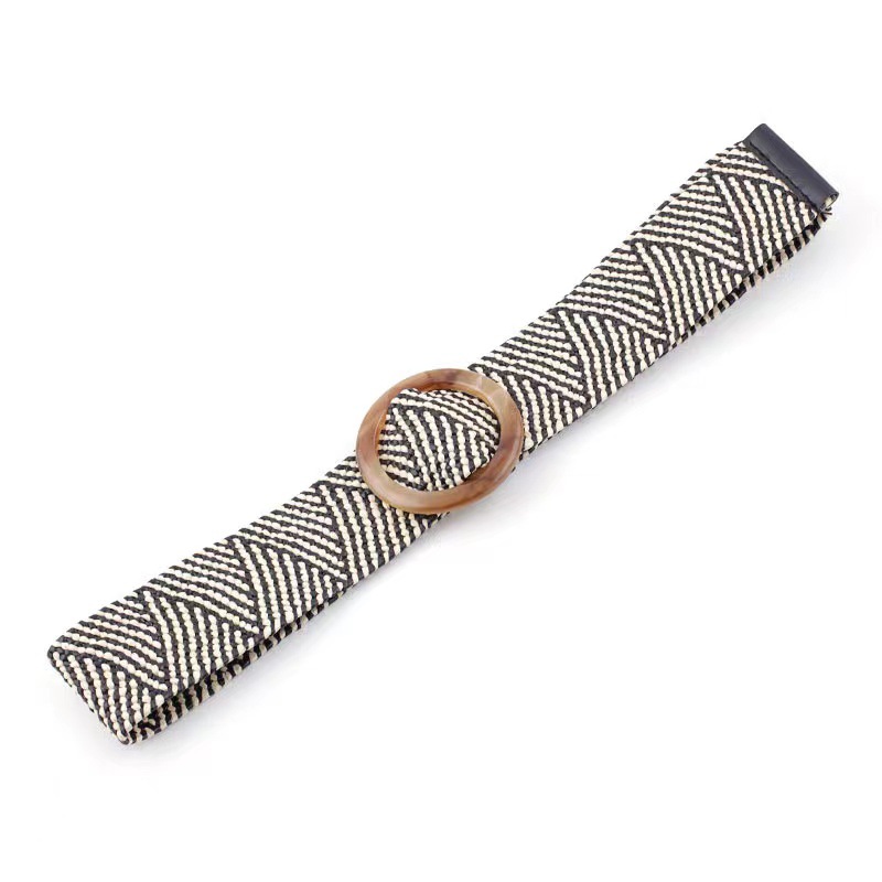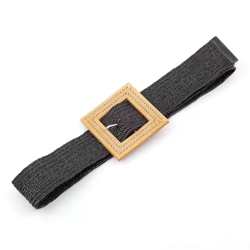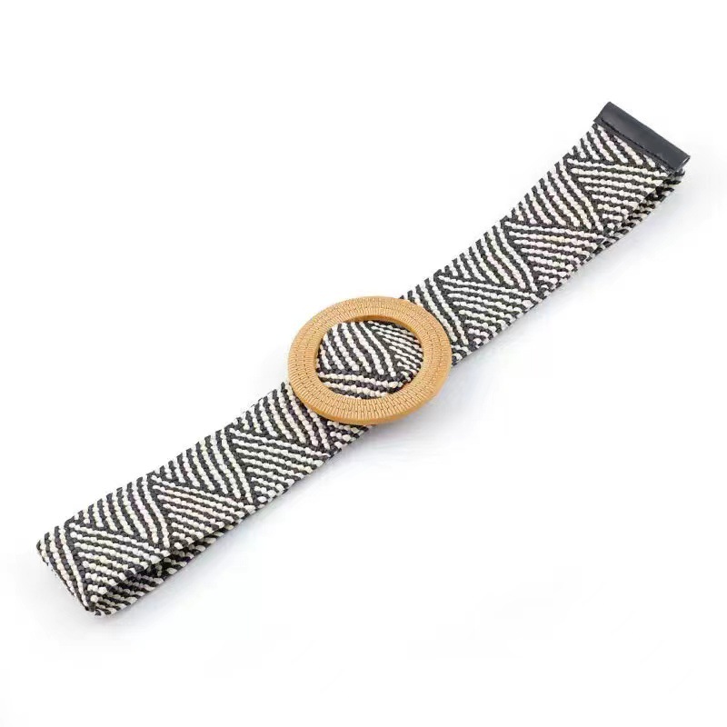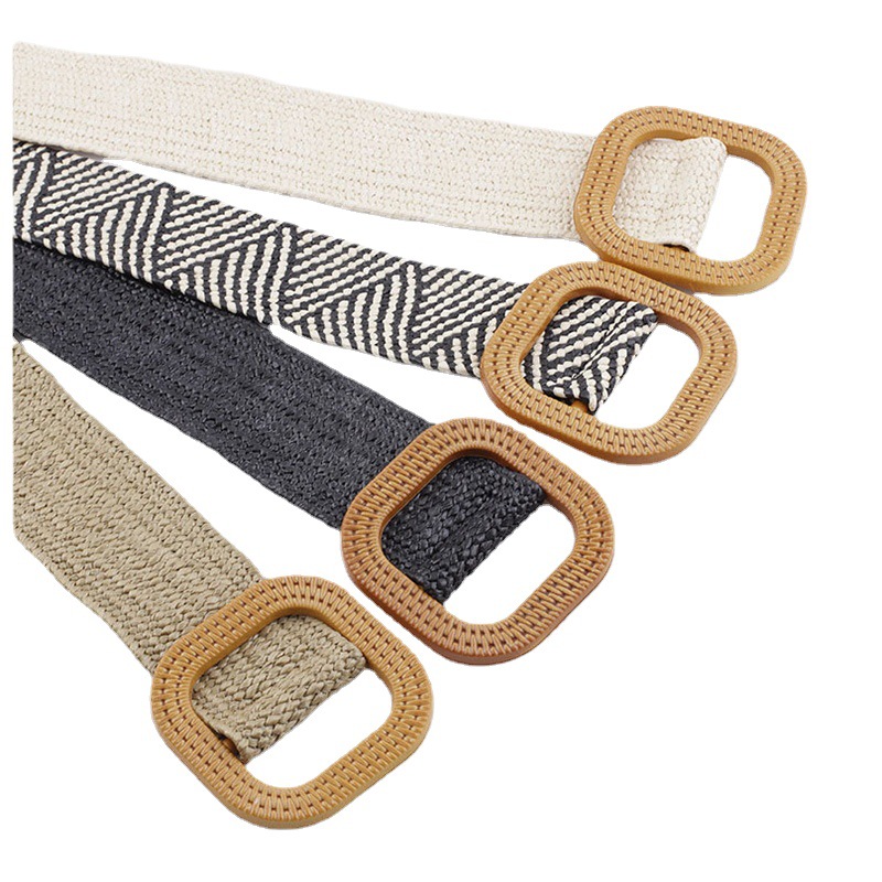 Женский широкий плетеный эластичный пояс для платья с Круглой Бамбуковой пряжкой, повседневный модный пояс с деревянной Нефритовой пряжкой, пояс из искусственной соломы