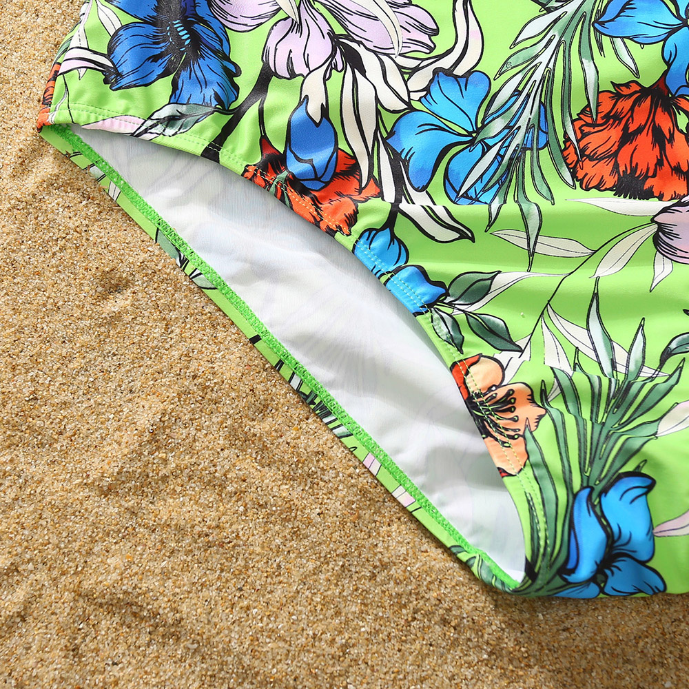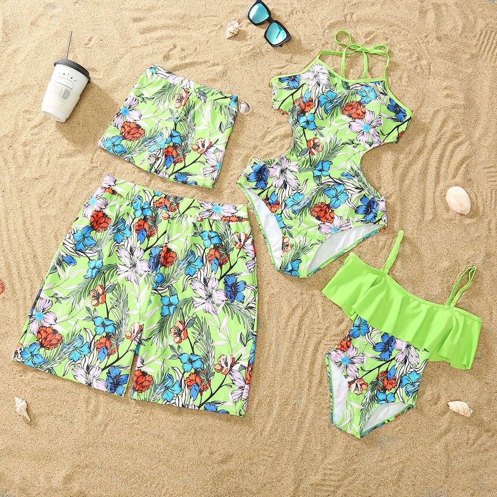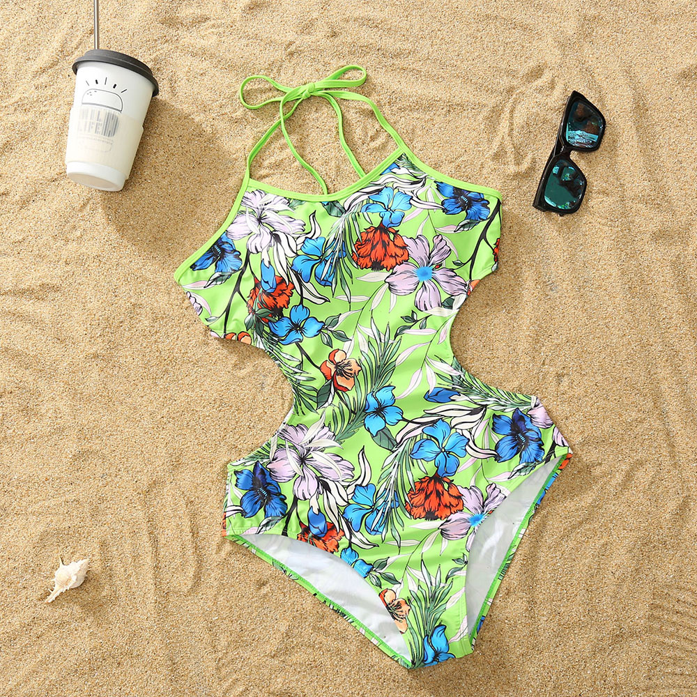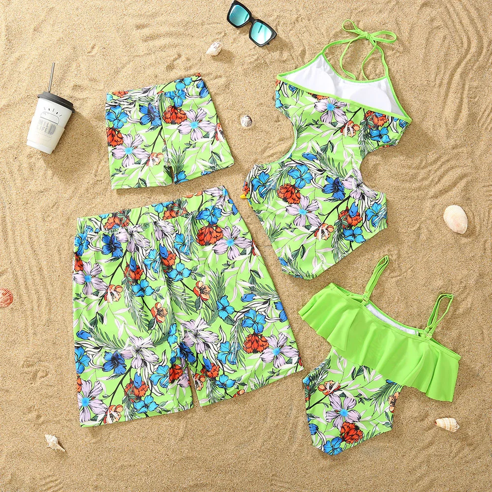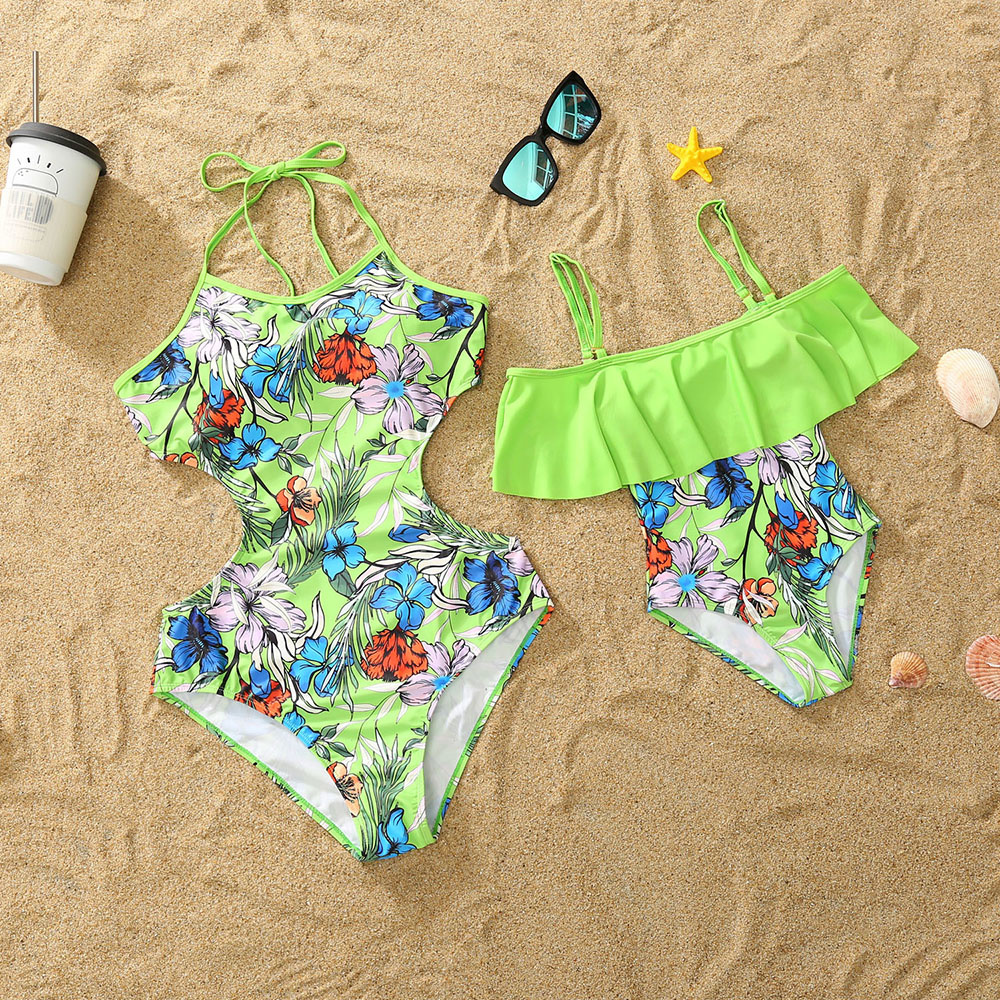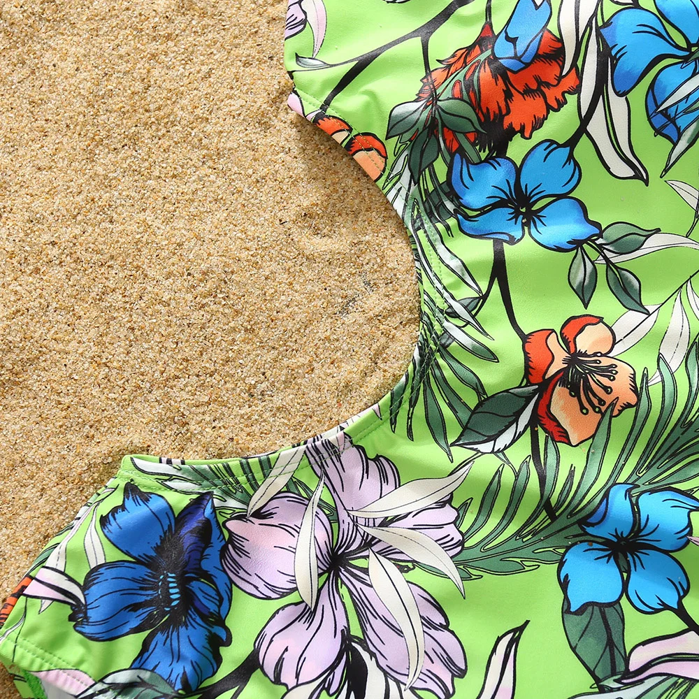 Женский слитный купальник, Летний зеленый купальник с принтом в полоску, с воланом, для отпуска на море