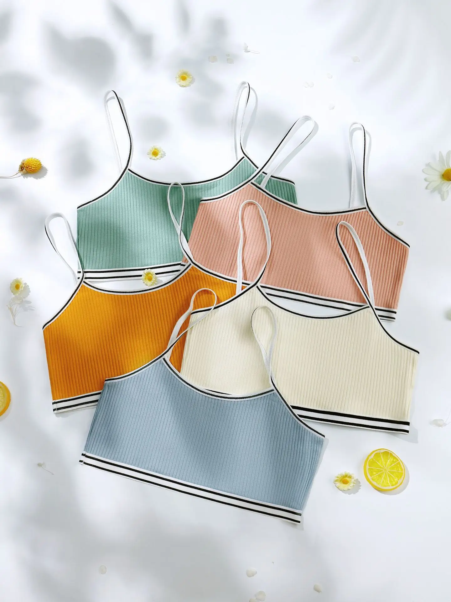 Женский спортивный топ-бра BZEL, хлопковое нижнее белье для подростков, удобное нижнее белье, полосатый дышащий Топ