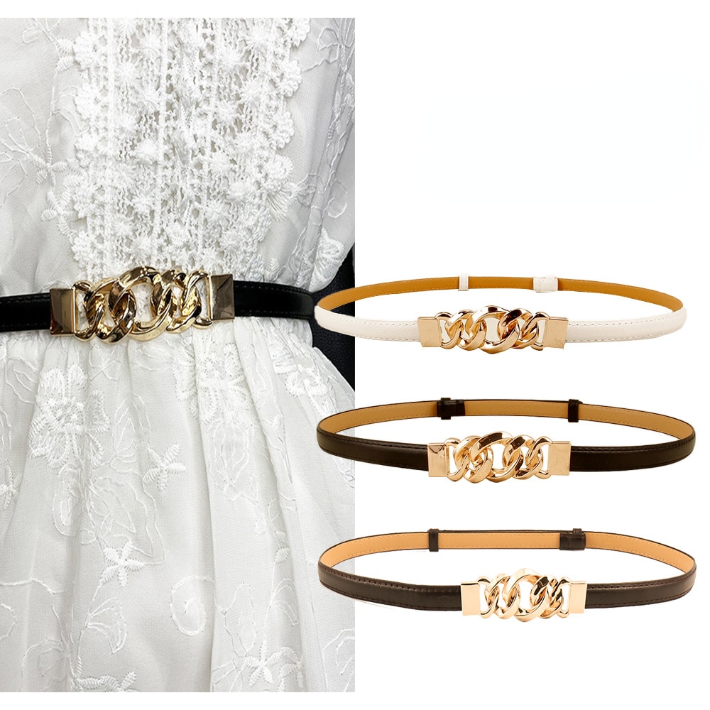 Женский тонкий ремень с пряжкой-цепочкой, регулируемый декоративный ремень для юбки или платья
