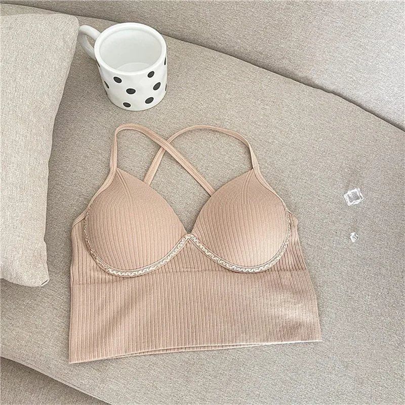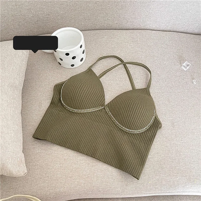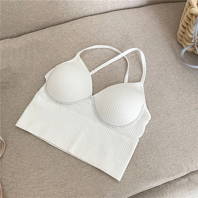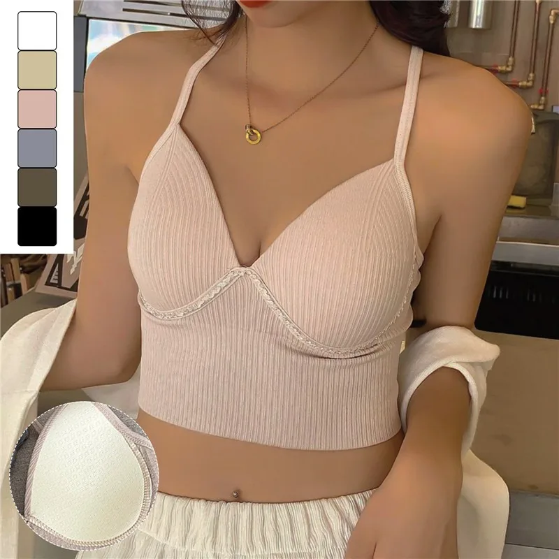 Женский топ, нижнее белье без косточек, V-образная кофта, цельный топ на тонких бретелях, в полоску, женское нижнее белье, топы