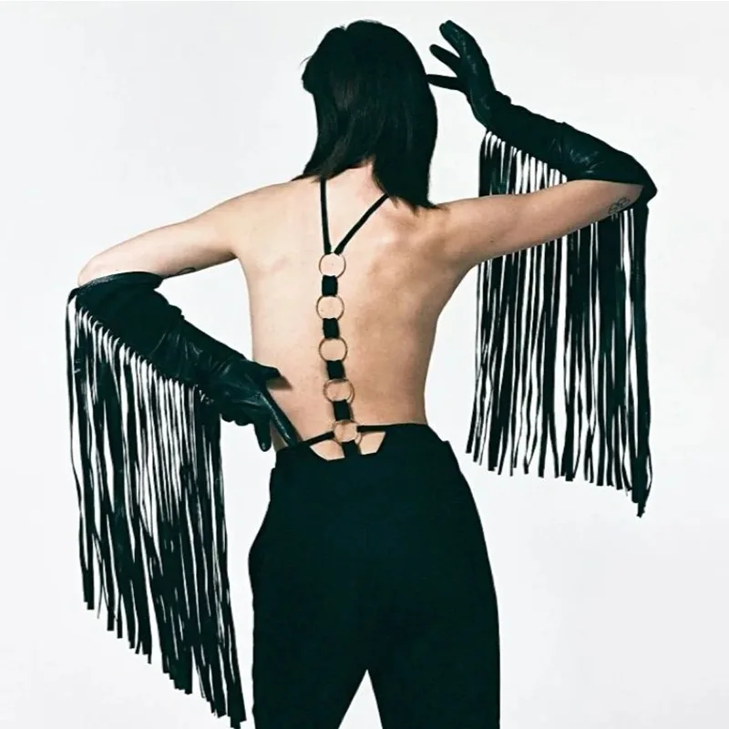 Дизайн: длинные детали с бахромой на всей руке, длина отделки кисточкой 30 см, которая