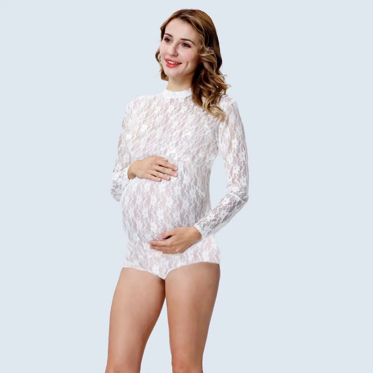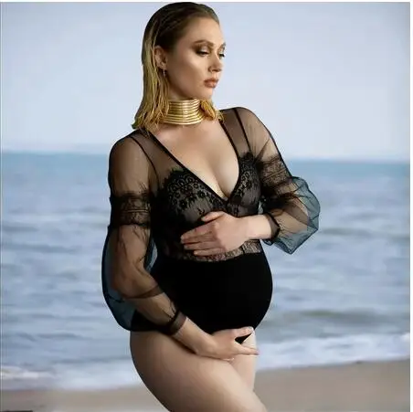 Женский топ с ложным воротником и длинным рукавом, боди, сексуальный прозрачный комбинезон для беременных женщин, фотосессия, пальто