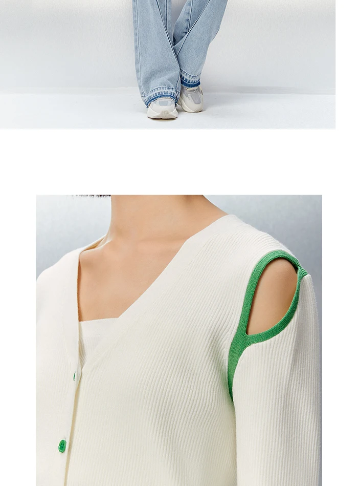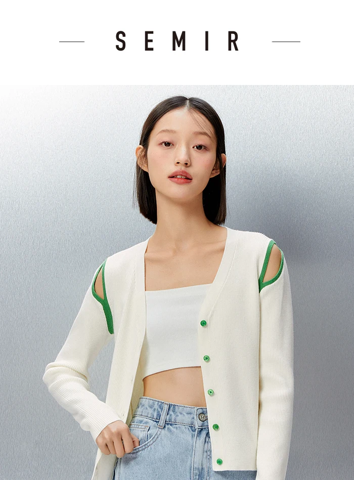 Женский трикотажный ажурный кардиган Semir, приталенный контрастный антистатический контрастный свитер с V-образным вырезом, весна 2023