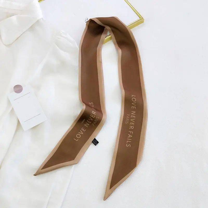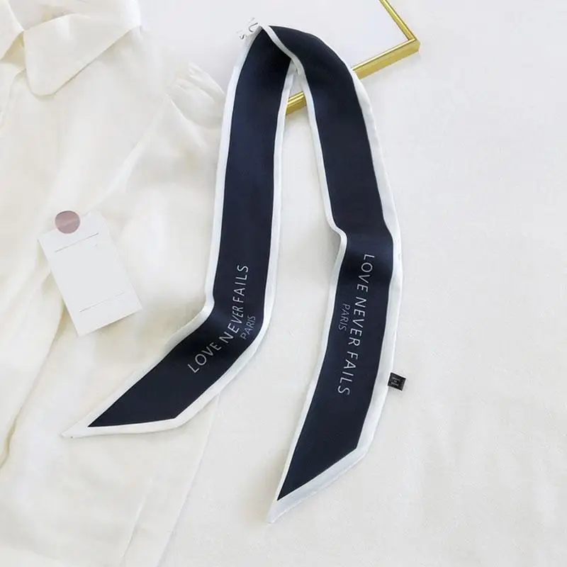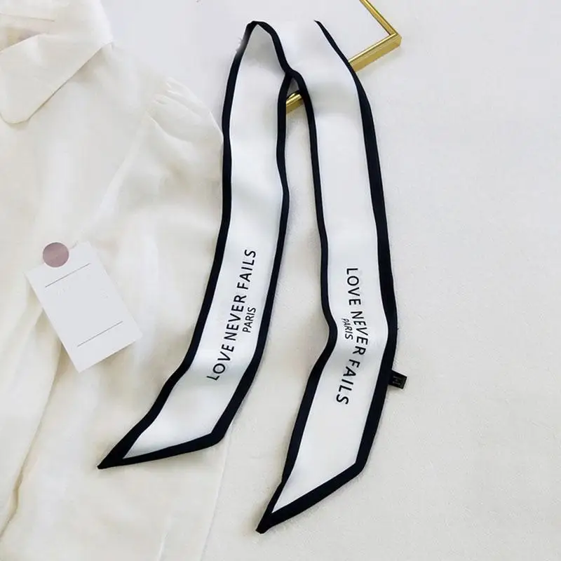 DIY Hair Tie Band Handle Bag Ribbons Silk Satin Scarf Letters Print Long Strip Small Scarf Multi-Function Decorative Neckerchief