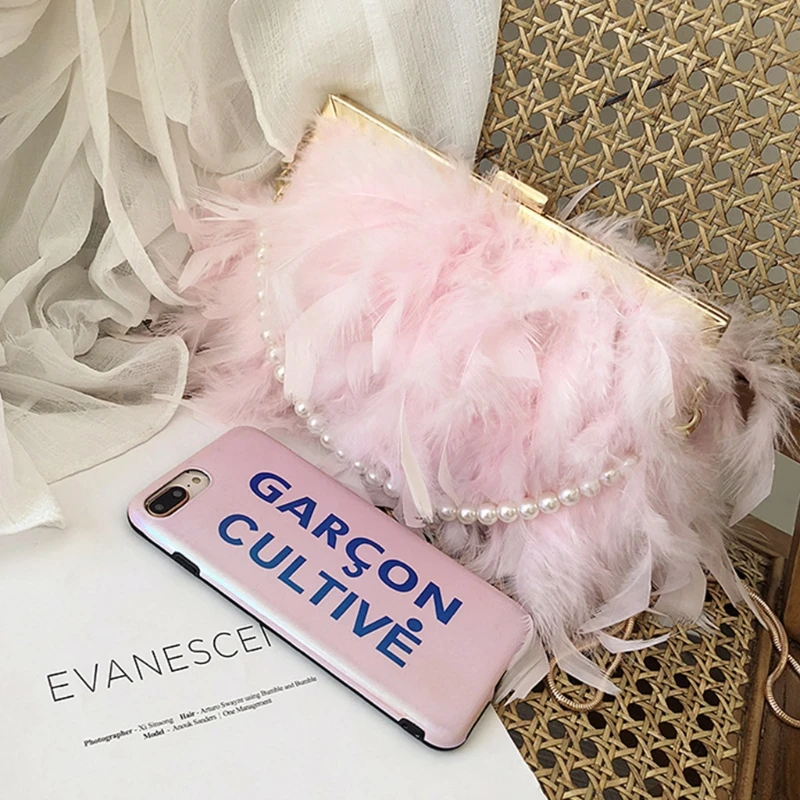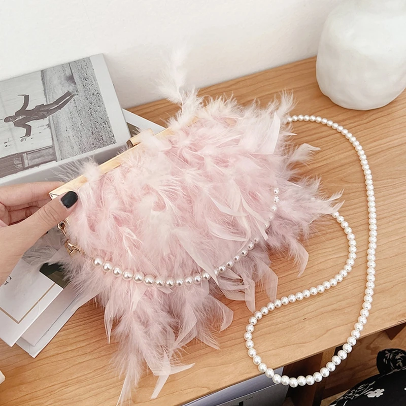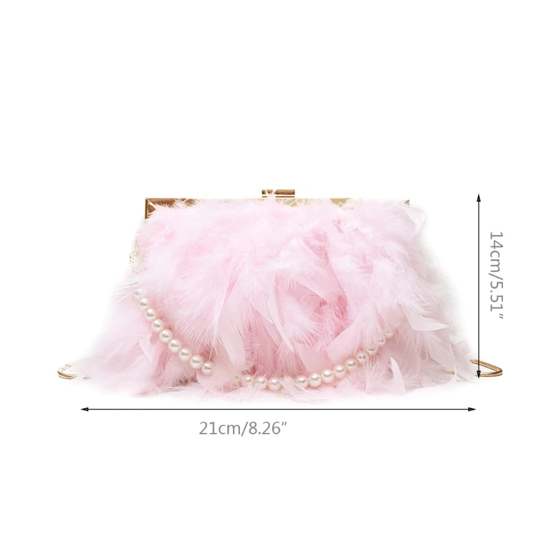 Package 1 includes 1 x Feather bag with pearl chain