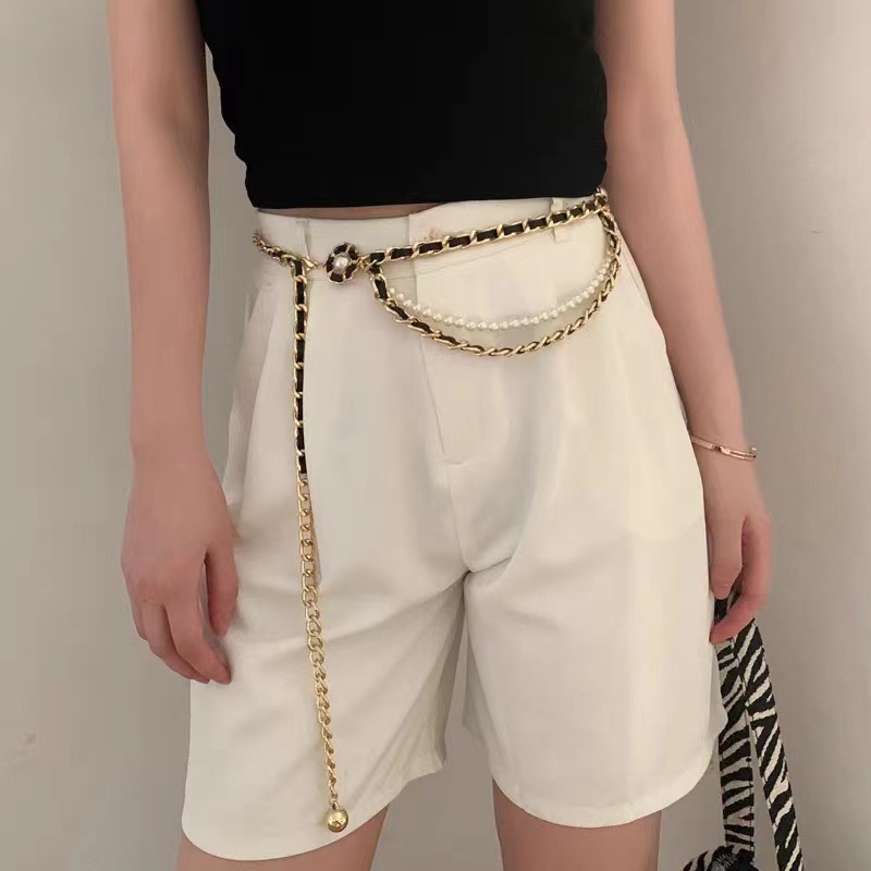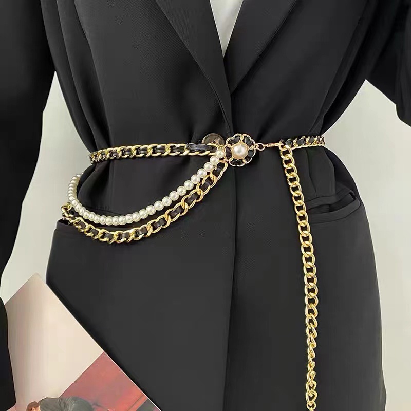 Женский винтажный пояс с цепочкой, универсальный металлический пояс в стиле панк/хип-хоп с высокой талией