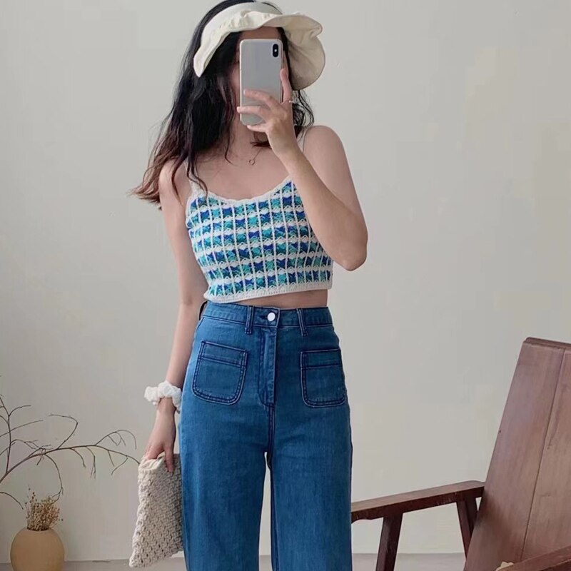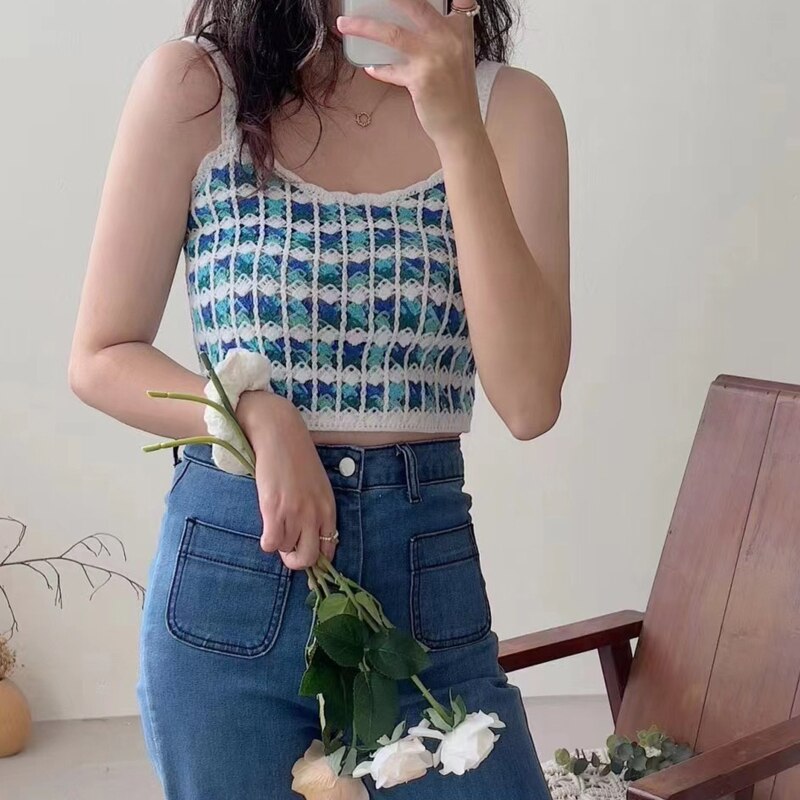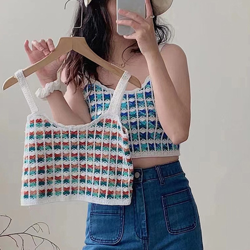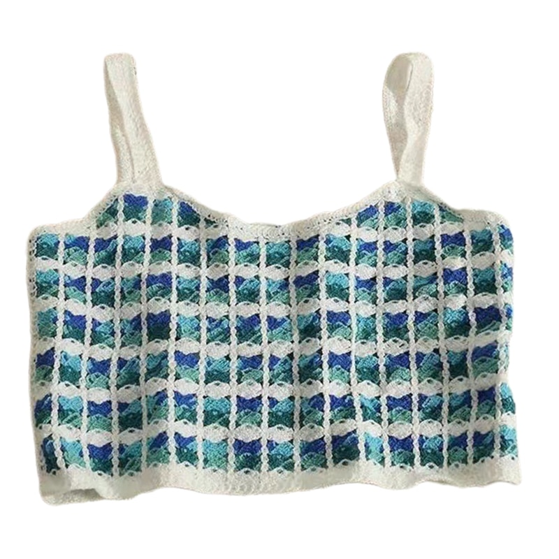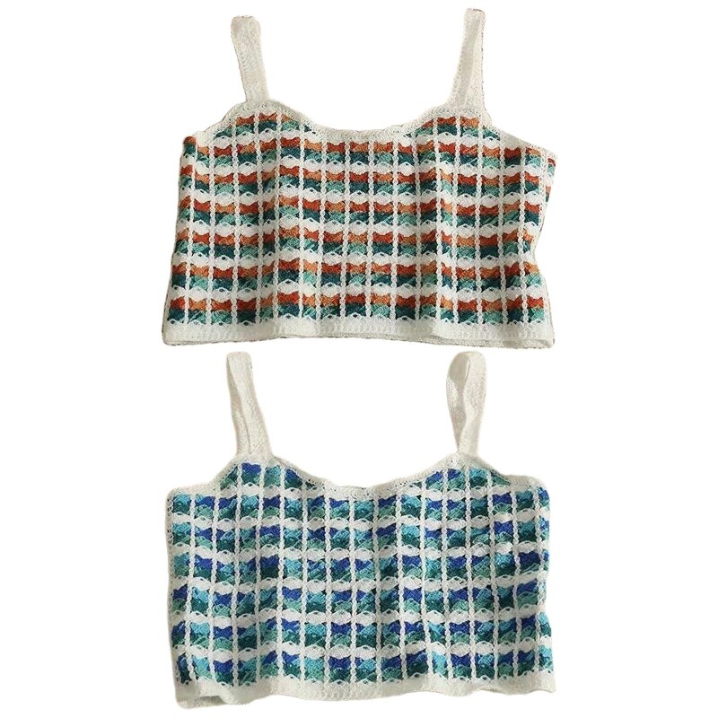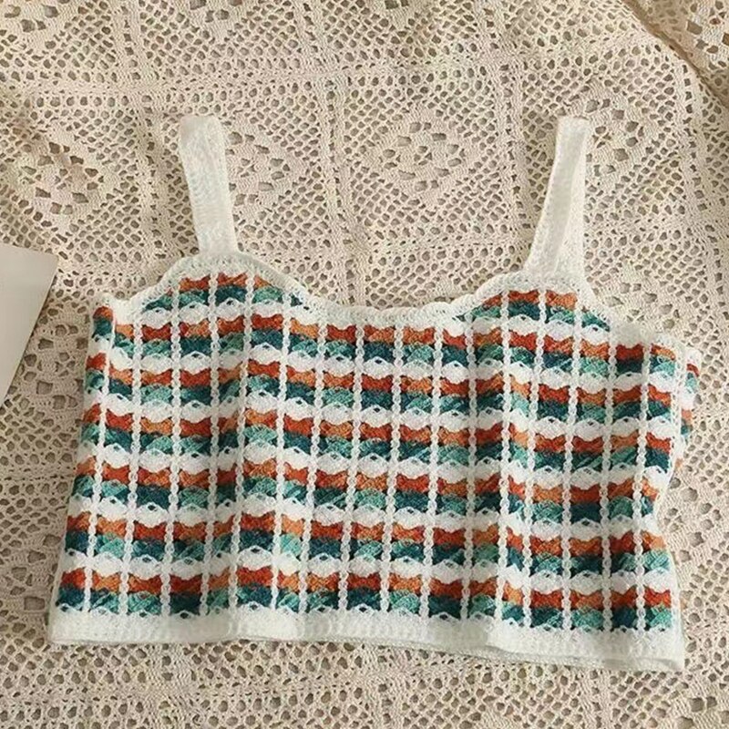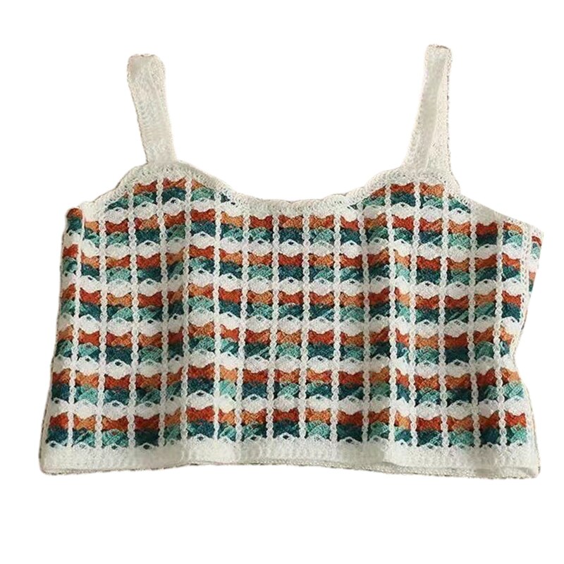 Вязаные крючком разноцветные ромбы и полосатые узоры, Повседневная застежка, открытый пупок.