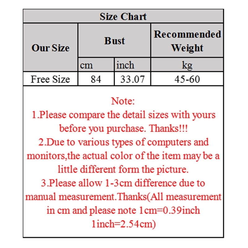Размер: один размер обхват груди: 84 см (33,07 дюйма) рекомендуемый вес: 45-60 кг