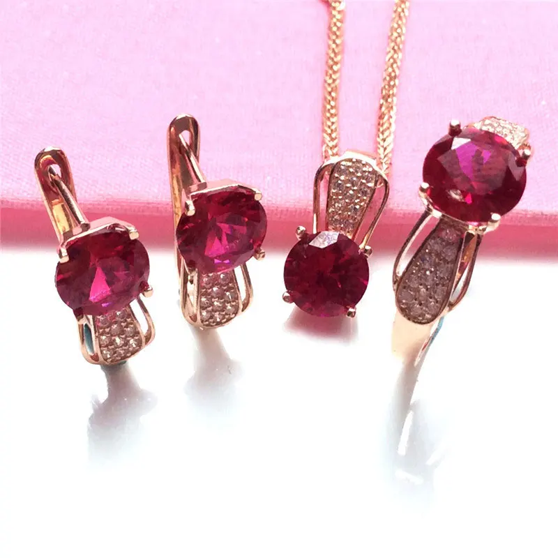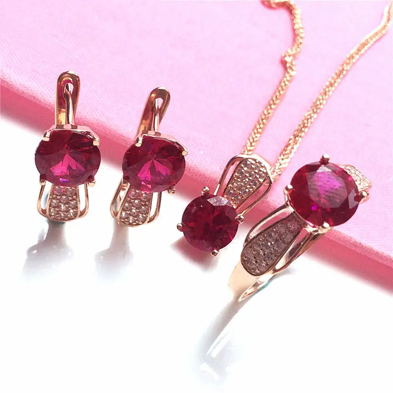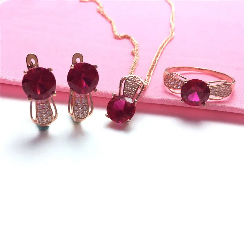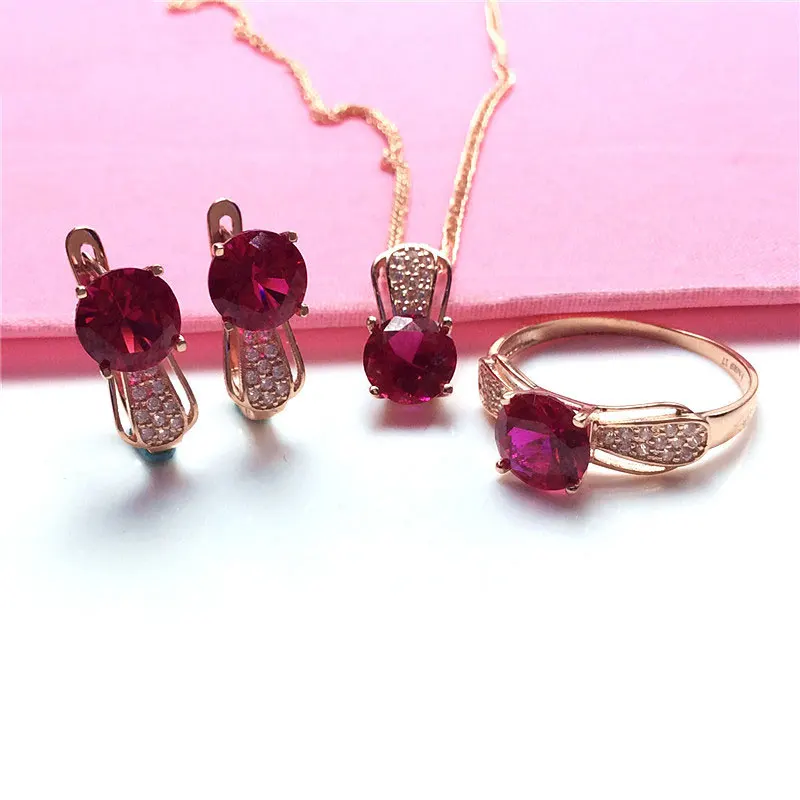 Женский ювелирный комплект из кольца и серёг, покрытое розовым золотом 14 к