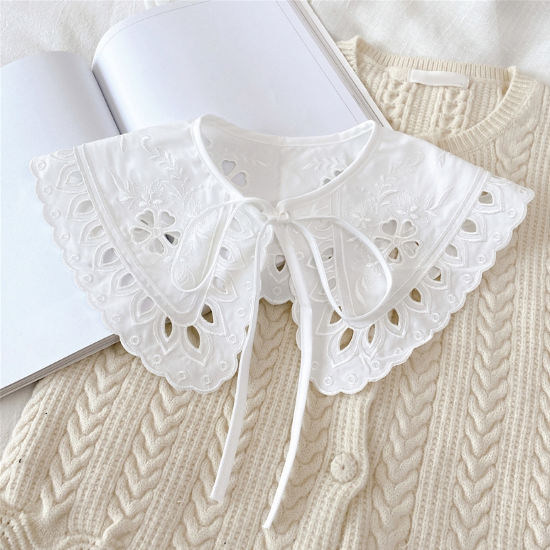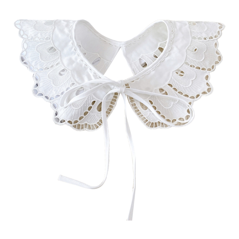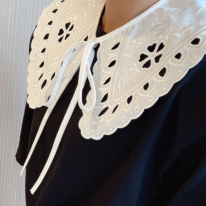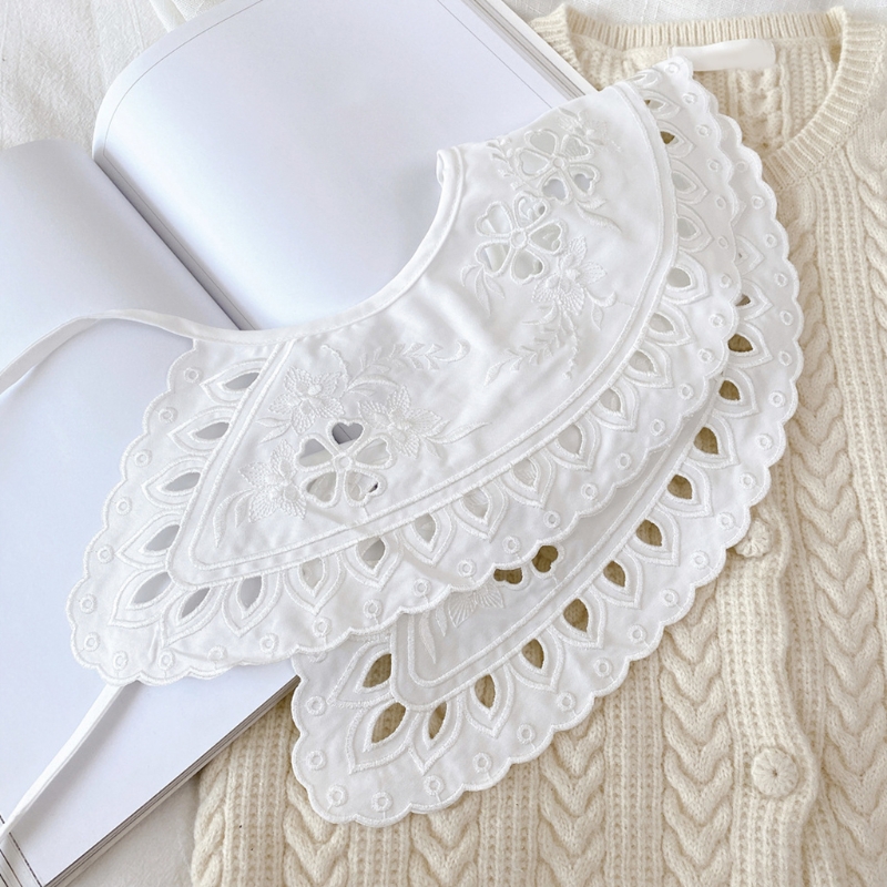 Корейские женщины белый хлопок Поддельный Воротник шаль обернуть выдалбливают цветочные рыбья чешуя ожерелье шарф вышивка короткое пончо