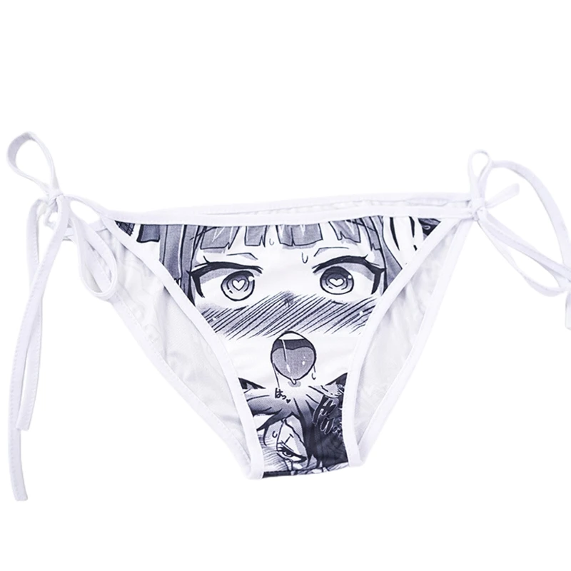 Сексуальное нижнее белье с низкой посадкой, трусики с завязками на боку, трусики с принтом каваи, женские трусики с регулируемой стороной, легкое нижнее белье