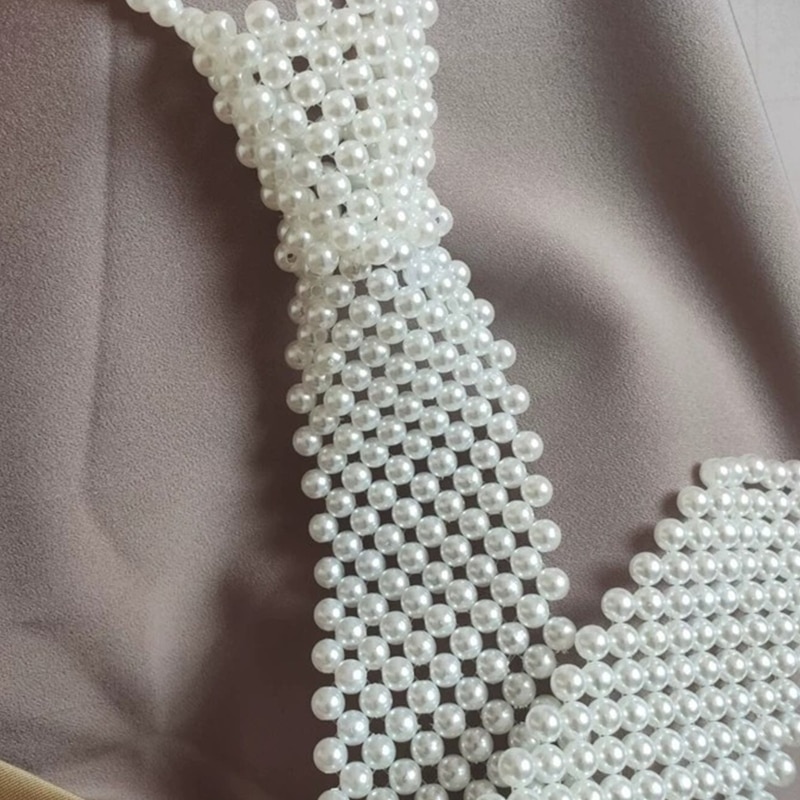 Женское ажурное Тканое ожерелье с галстуком из искусственного жемчуга, ретро плетение из бисера, Винтажные Украшения, колье, рубашка, воротник для галстука для F3MD