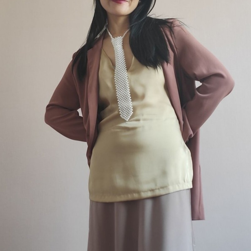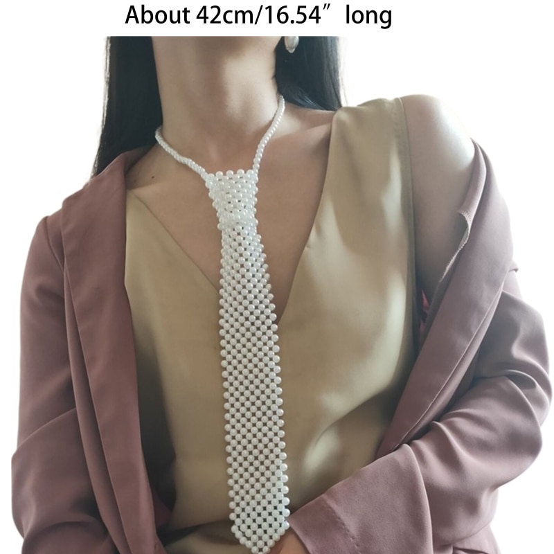 Полый тканый галстук из искусственного жемчуга с бисером, классический и элегантный. Вы можете отрегулировать длину с помощью удлиненной цепочки.