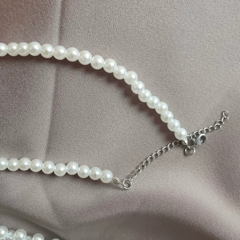 Женское Ожерелье с галстуком, винтажное плетеное ожерелье с имитацией жемчуга и бусинами в стиле ретро, ювелирное изделие, ошейник для рубашки F3MD