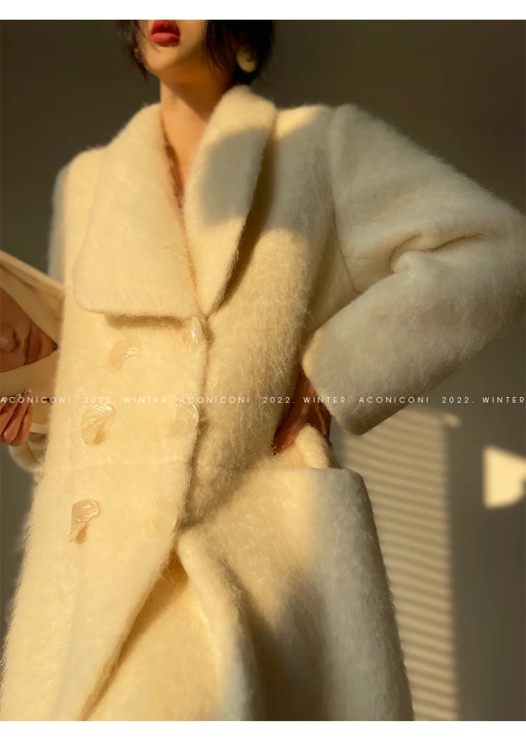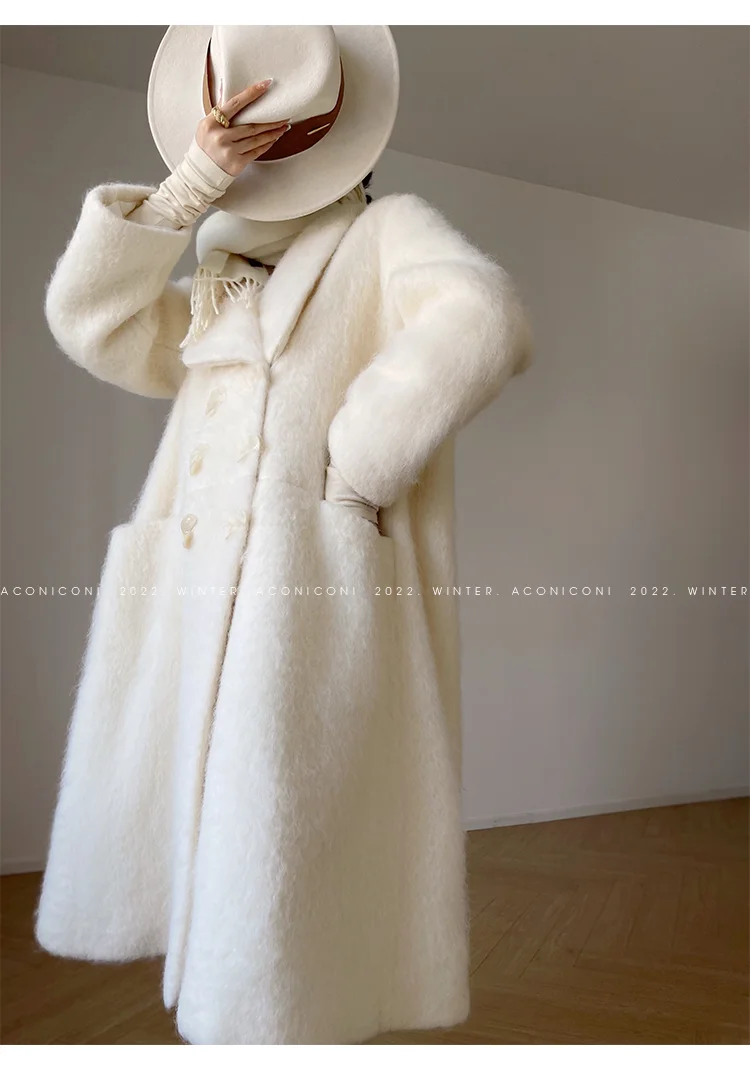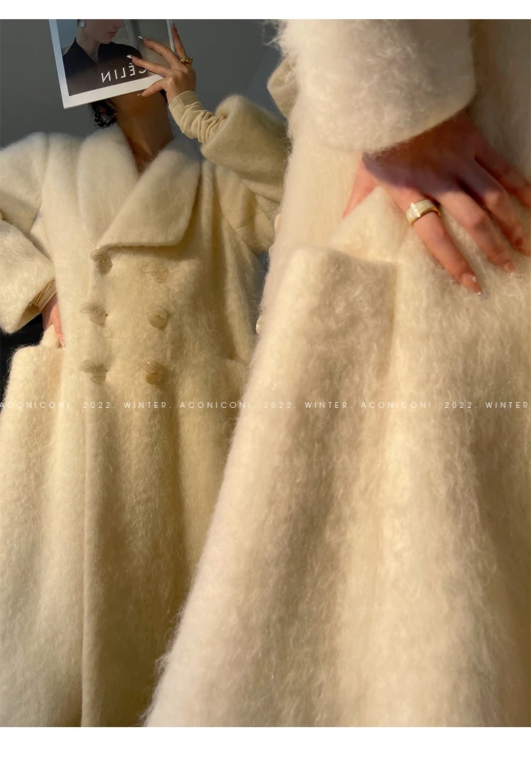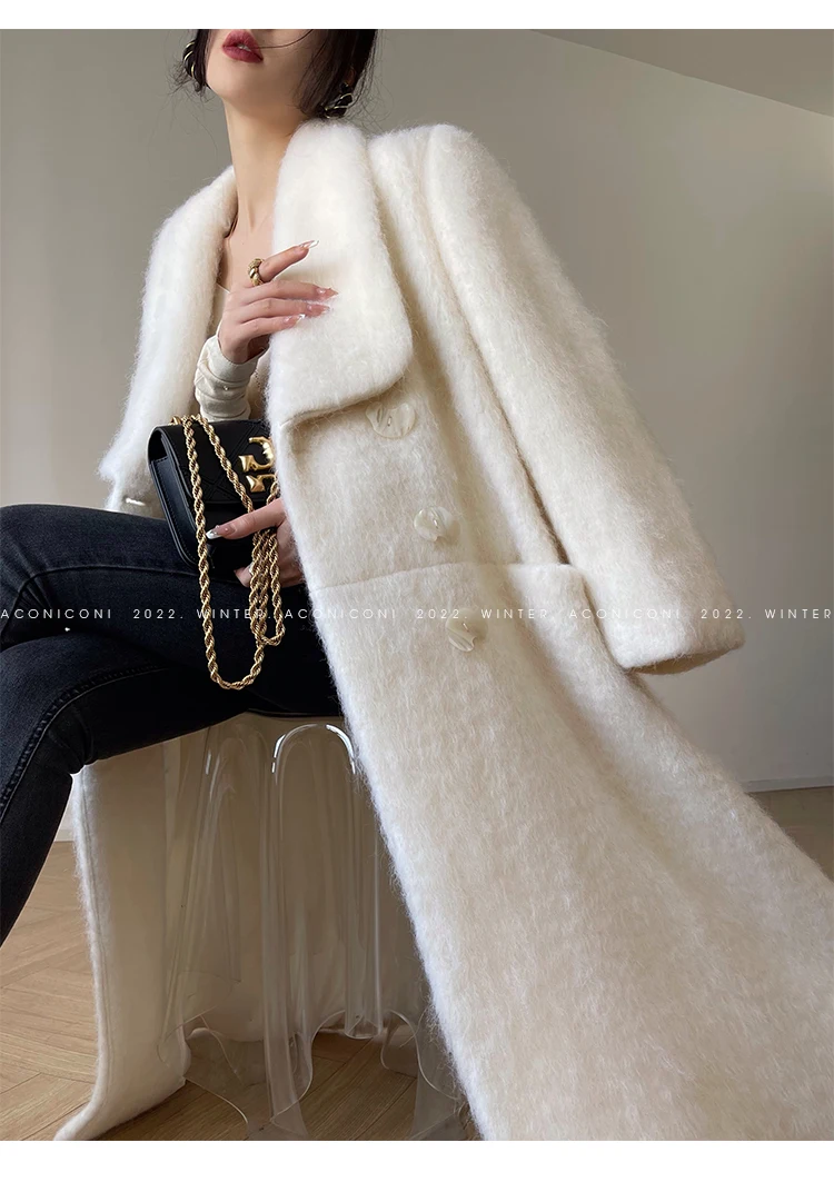 Женское пальто из смешанной шерсти Lautaro, длинное винтажное белое толстое теплое пушистое двубортное элегантное дизайнерское пальто, зима 2023
