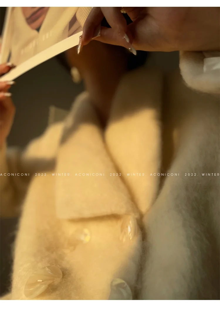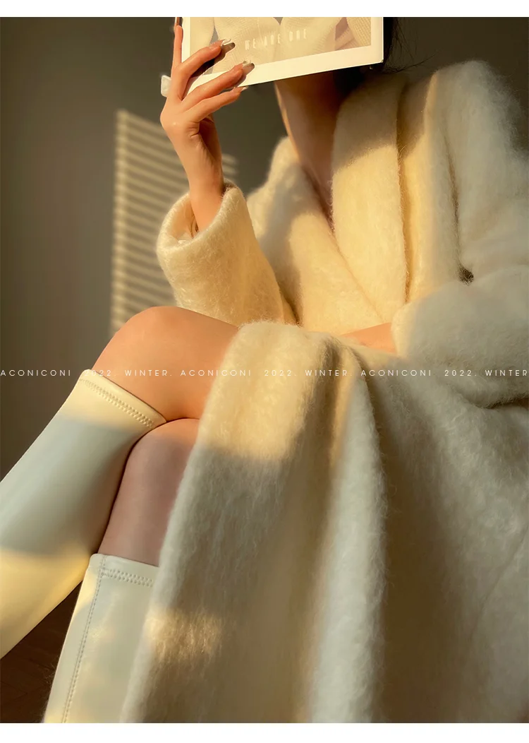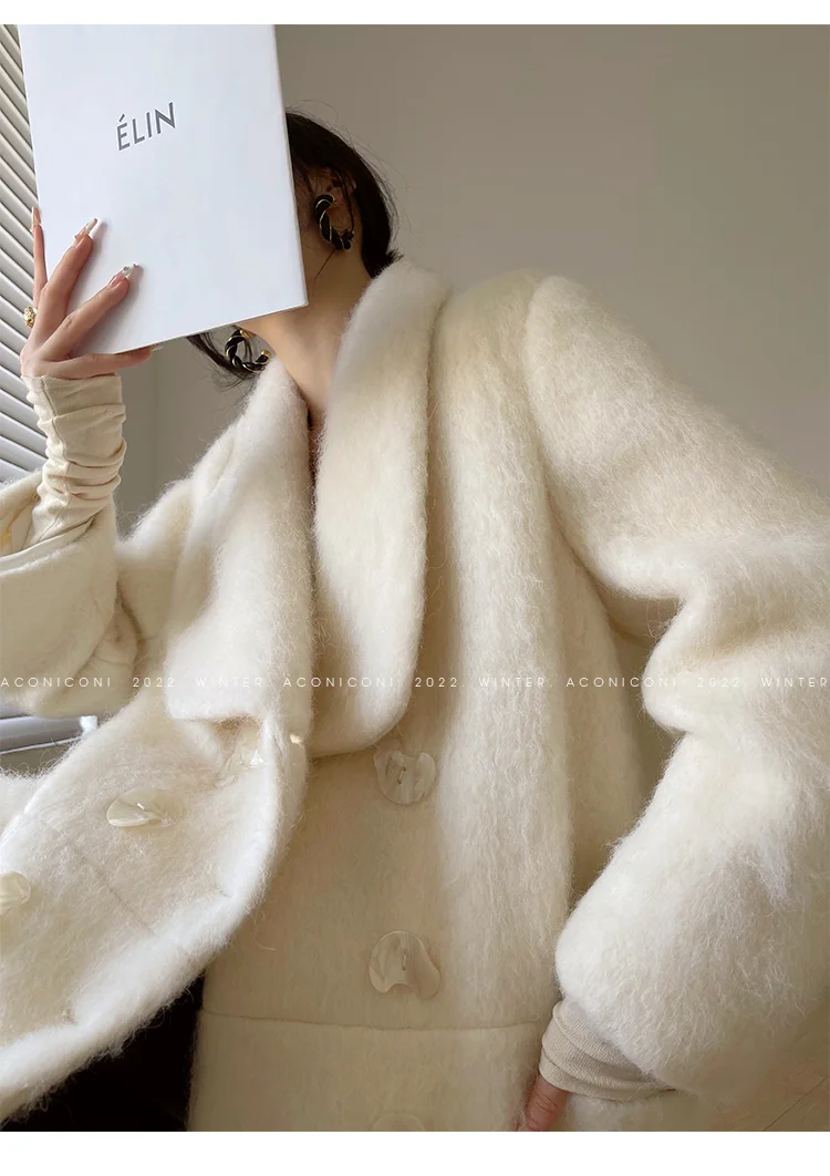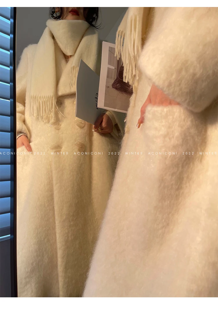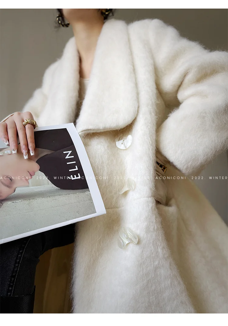 Женское пальто из смешанной шерсти Lautaro, длинное винтажное белое толстое теплое пушистое двубортное элегантное дизайнерское пальто, зима 2023