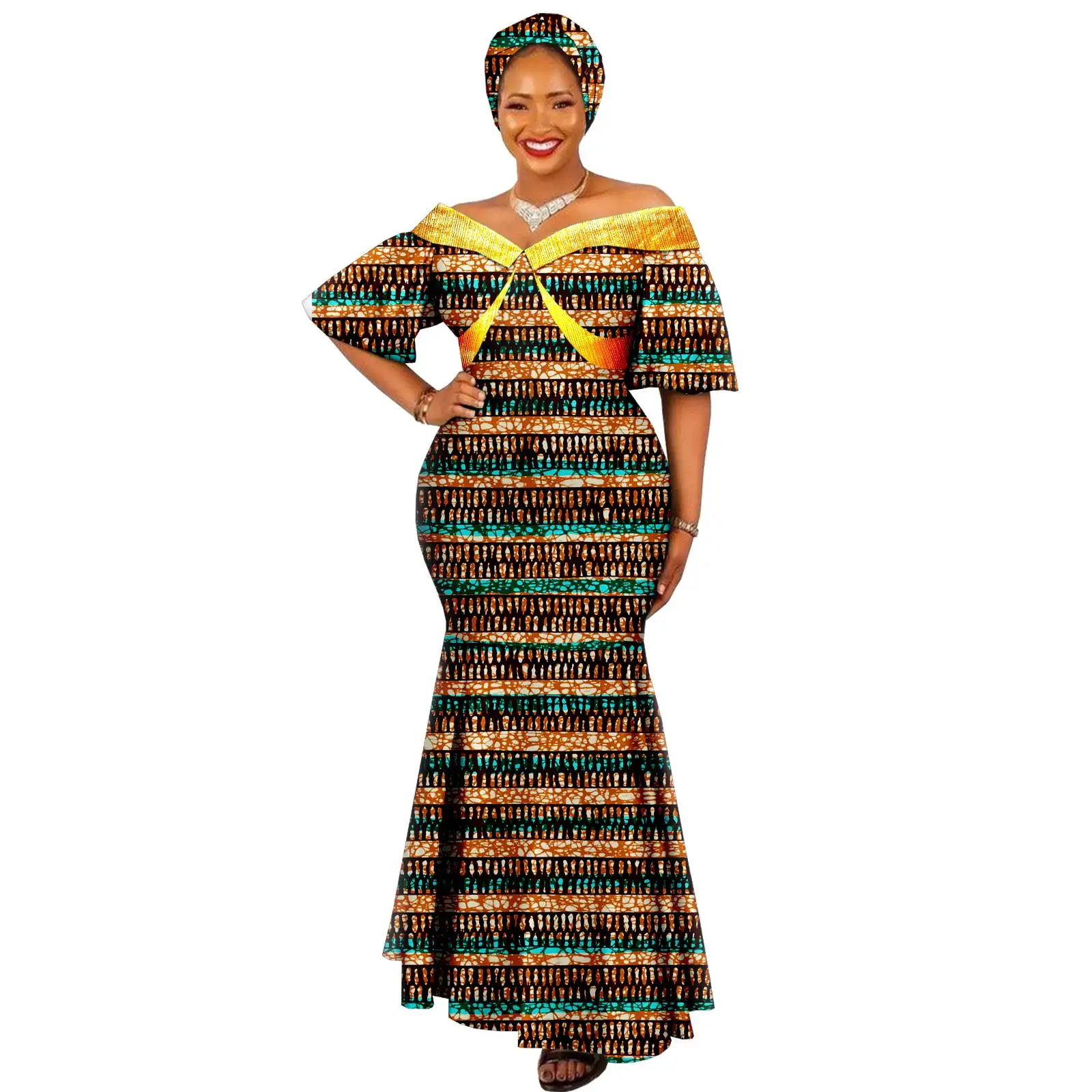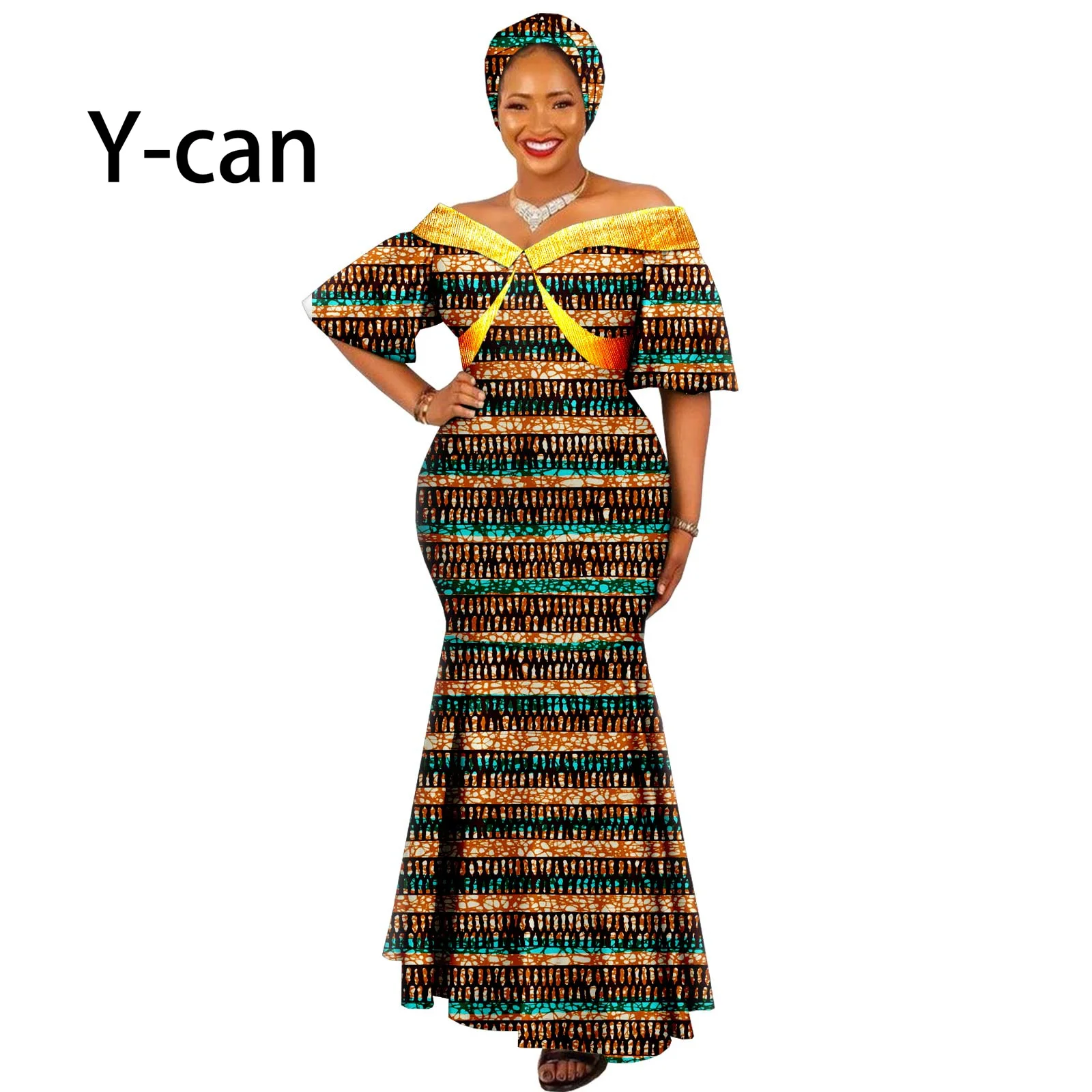 Женское платье-Русалка с открытыми плечами, длинная юбка с запахом, Элегантное свадебное платье в африканском стиле, Y2325090