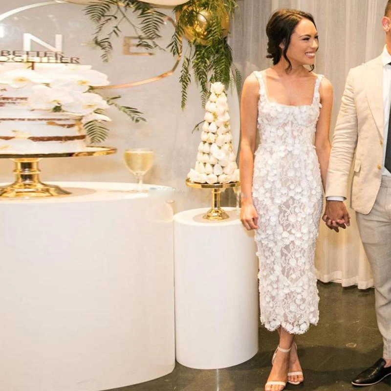 Женское свадебное платье It's yiiya, белое платье до середины иллюзии с квадратным вырезом и объемными цветами на лето 2021